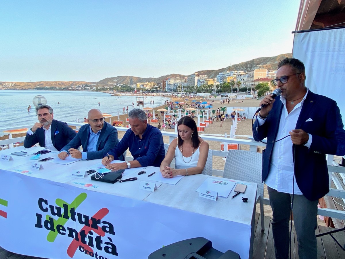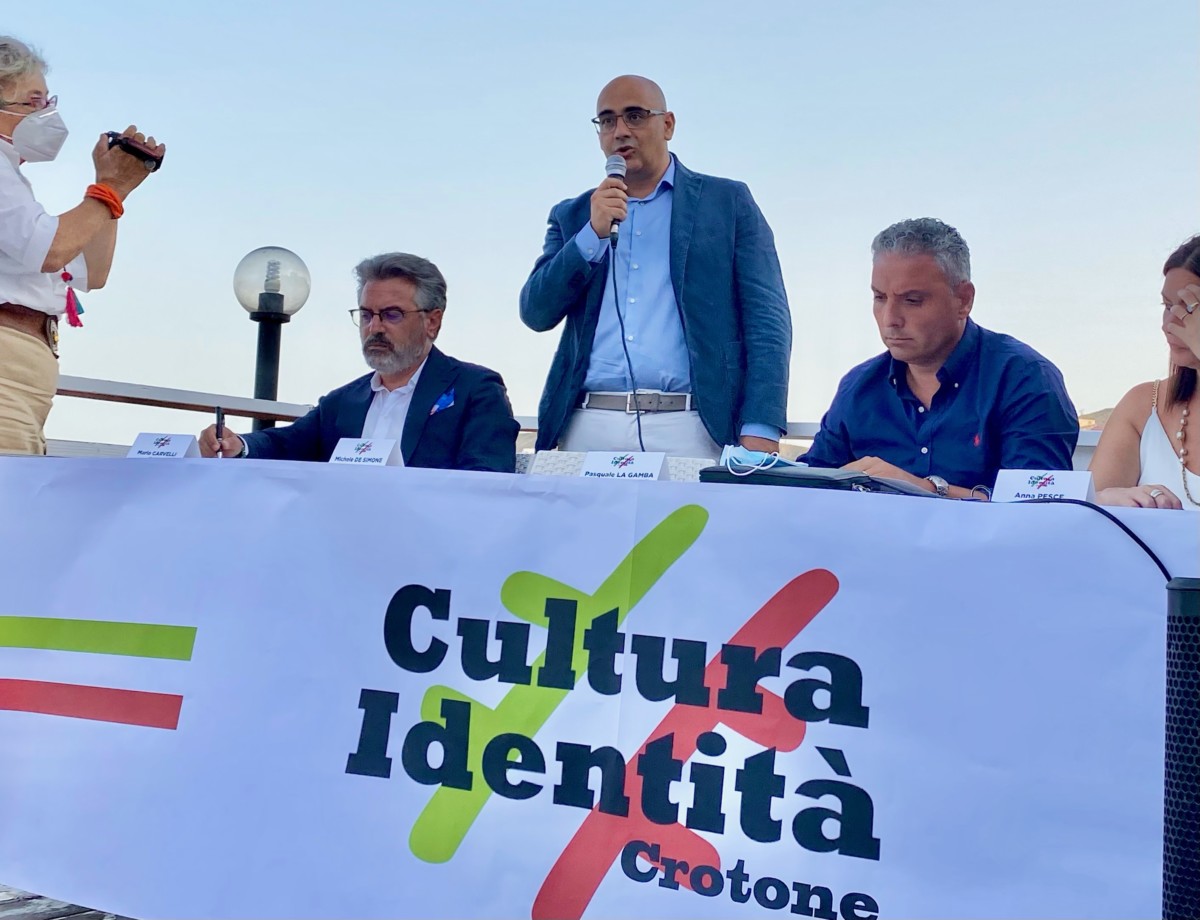 Martedì 3 agosto nella splendida cornice del lungomare di Crotone, presso la l’incantevole terrazza del sunrise, si e’svolta la conferenza stampa dell’associazione “Cultura Identità”. L’ associazione nasce nel 2019 da un’idea di Edoardo Sylos Labini con lo scopo di difendere e promuovere l’identità italiana e di valorizzare il nostro patrimonio culturale ed artistico.