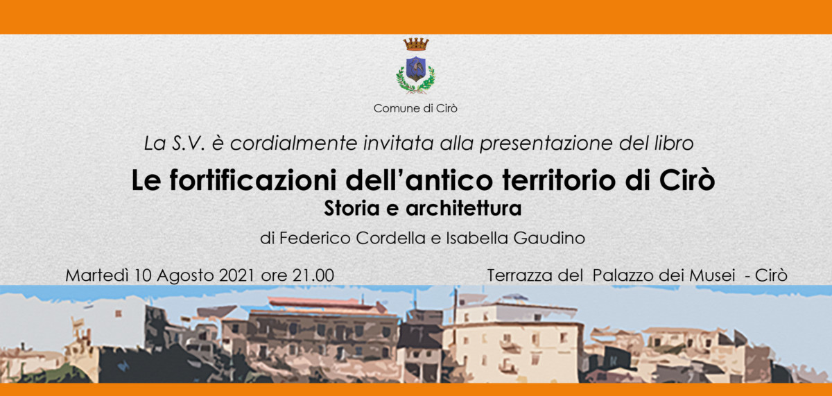 Durante le manifestazioni “Sere d’estate 2021”, organizzate dall’amministrazione del Comune di Cirò, è stato presentato il libro degli architetti Isabella Gaudino e Federico Cordella: “LE FORTIFICAZIONI DELL’ANTICO TERRITORIO DI CIRO”.