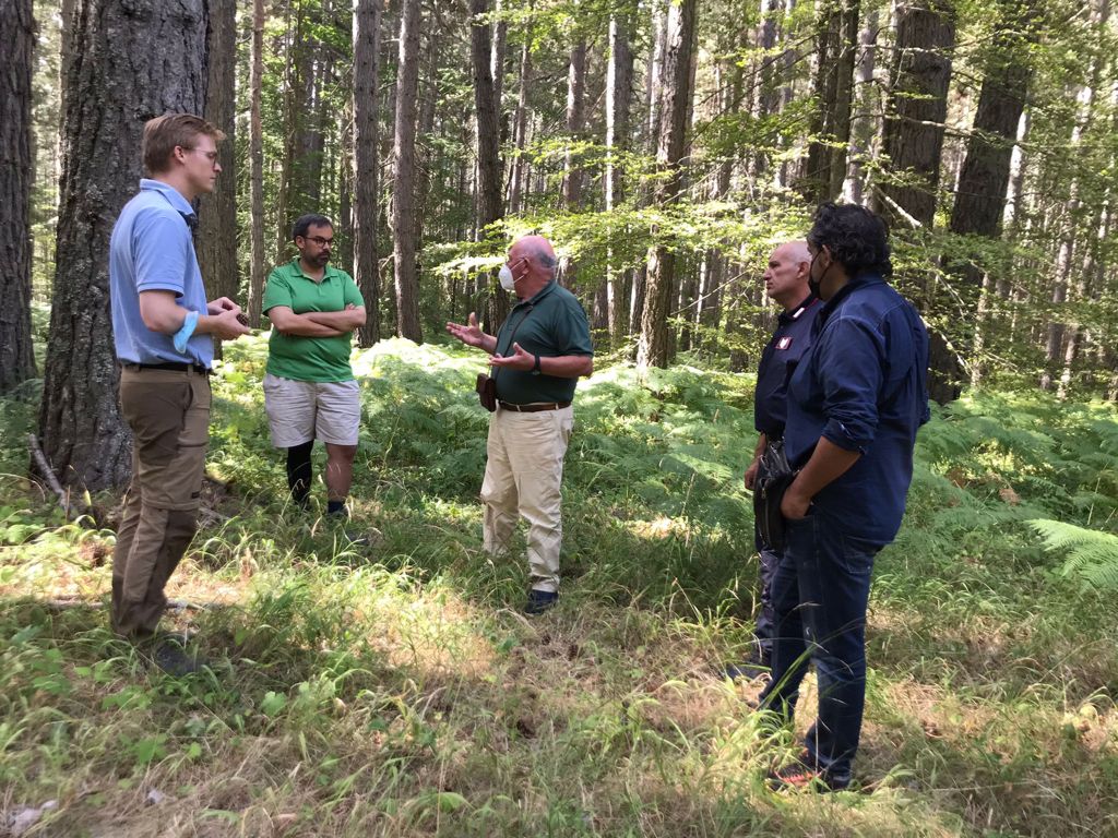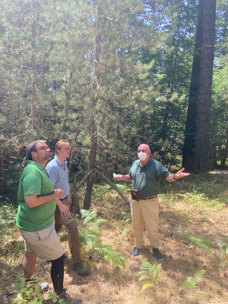 Il motivo dell’incontro è stato quello di visitare le pinete di laricio del parco e conoscerne la loro gestione, al fine di confrontarla con quella praticata nelle pinete di pino nero in Carinzia (Austria) e Westphalia in Germania, dove ricadono i boschi delle rispettive proprietà.