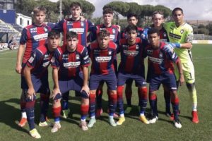 Risultato amaro per gli squaletti nella seconda giornata del campionato Primavera 2B: i ragazzi di Lomonaco perdono 6-2 contro una Lazio allestita per tornare subito nel Primavera 1 dopo la retrocessione della scorsa annata. Calori schiera ben tre 2002 in campo oltre a Romero (2004), calciatore ormai stabilmente nel giro della prima squadra. Ed è proprio il forte esterno a impensierire Pasqua all’inizio con due conclusioni (8′ e 11′). Poi al 15′ contatto D’Aprile-Floriani: il direttore di gara concede un calcio di rigore un po’ generoso con Bertini che lo trasforma. Cinque minuti più tardi arriva il raddoppio biancoceleste: Castigliani crossa in area per Crespi che batte Pasqua. I rossoblu accusano il colpo e al 25’ Crespi in acrobazia colpisce la traversa. Gli squaletti da qui al termine della prima frazione di gioco corrono pochi pericoli e al 38’ Rojas segna un grandissimo gol da fuori area che riaccende le speranze rossoblù. Infatti, quattro minuti più tardi, su cross dello stesso Rojas arriva il fallo di mano di Floriani: l’arbitro assegna la massima punizione ed è proprio il cileno a trasformarla. Si va quindi negli spogliatoi con il morale altissimo, ma al rientro in campo dopo quattro minuti Spezzano viene espulso per doppio giallo e da qui cambia la partita: Bertini al 60’ segna da calcio di punizione. Al 63’ Rojas ha la palla del pari, fa tutto bene, ma viene fermato da un difensore laziale al momento della conclusione. Al 71’ Troise chiude la gara, con i baby rossoblù che fanno fatica, vista anche l’inferiorità numerica, ma c’è ancora da evidenziare un tiro di Cantisani tre minuti più tardi deviato in angolo. I biancocelesti non sono ancora sazi: all’80’ Bertini calcia da fuori e batte Pasqua e all’88’ Mancino a porta sguarnita fissa il risultato sul 6-2 finale. Parziale pesante per i ragazzi di Lomonaco che però al termine della prima frazione avevano saputo impaurire la corazzata biancoceleste.