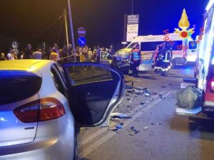 Due le vetture coinvolte, per cause in corso di accertamenti, in uno scontro frontale: una Kia Rio ed una Fiat Panda di proprietà di una società di vigilanza privata.