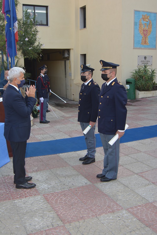 Come ogni anno, inoltre, prima della Santa Messa si è svolta nel piazzale della Questura una piccola cerimonia, tenuta dal Questore, nella quale sono stati premiati e lodati gli agenti di Polizia che si sono distinti per la loro abnegazione al lavoro, senso del dovere o per episodi di forte senso civico e spirito di sacrificio, secondo i principi cardine delle Forze dell’Ordine.