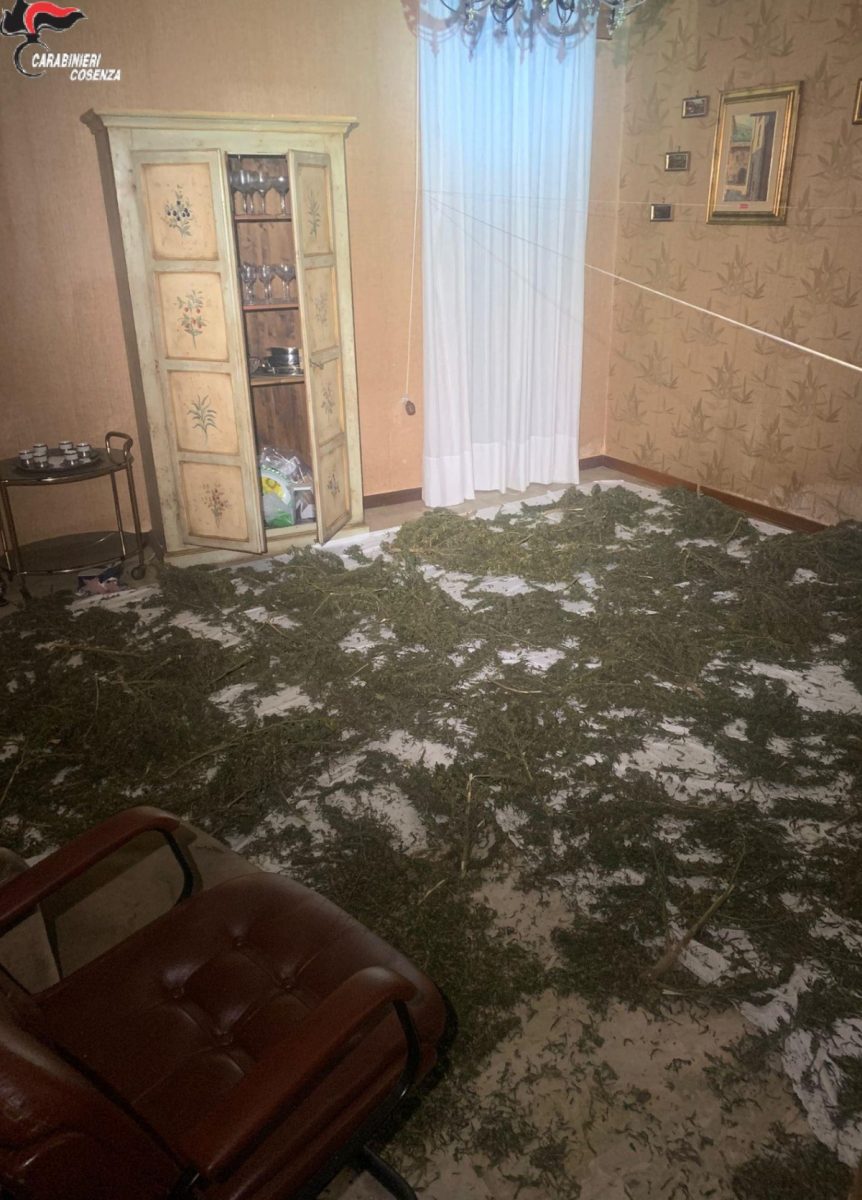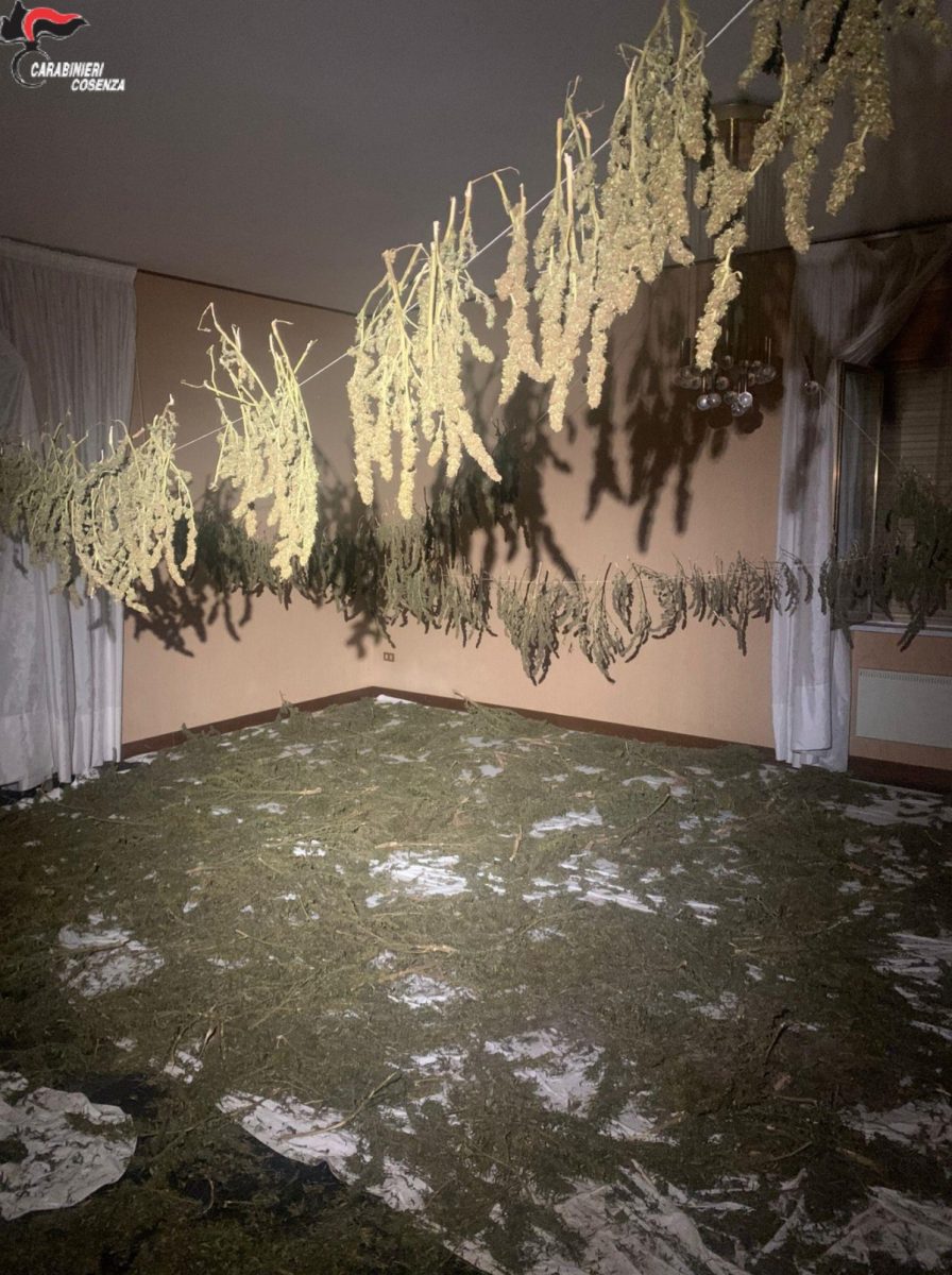 Nello specifico i militari del Nucleo Operativo e Radiomobile della Compagnia ausonica, allertati dai colleghi della Stazione di Chiaravalle (AN), a cui si era rivolto il proprietario dell’immobile, che vive in quel comune, per denunciare dei movimenti sospetti segnalati all’interno della sua casa sita a Corigliano, intervenivano in questa via Varsavia, dove veniva segnalato un possibile laboratorio della marijuana all’interno della predetta abitazione. In effetti la situazione che si presentava agli occhi dei militari era proprio quella di un laboratorio dove si faceva essiccare, si confezionava e si divideva in dosi la sostanza stupefacente. In diversi locali vi erano dei fili in ferro tesi a cui erano appesi ramoscelli di canapa indica in fase di essicazione, mentre in altri la sostanza era raccolta dentro delle lenzuola, pronta per la divisione in dosi. In alcune stanze, vi erano poi, delle inflorescenze di marijuana chiuse in dei sacchi in plastica, pronte per essere smerciate ai pusher del luogo. I militari della Sezione Operativa focalizzavano la loro attenzione sul repertamento di tracce biologiche lasciate dai possibili responsabili del laboratorio di marijuana. In effetti venivano ritrovati dei mozziconi di sigaretta, dei bicchieri e delle bottiglie in plastica utilizzate recentemente. Tutta la sostanza stupefacente veniva sottoposta a sequestro penale, in attesa degli esami tecnici e della successiva distruzione, nonché delle ulteriori indagini in corso per individuare i responsabili.
