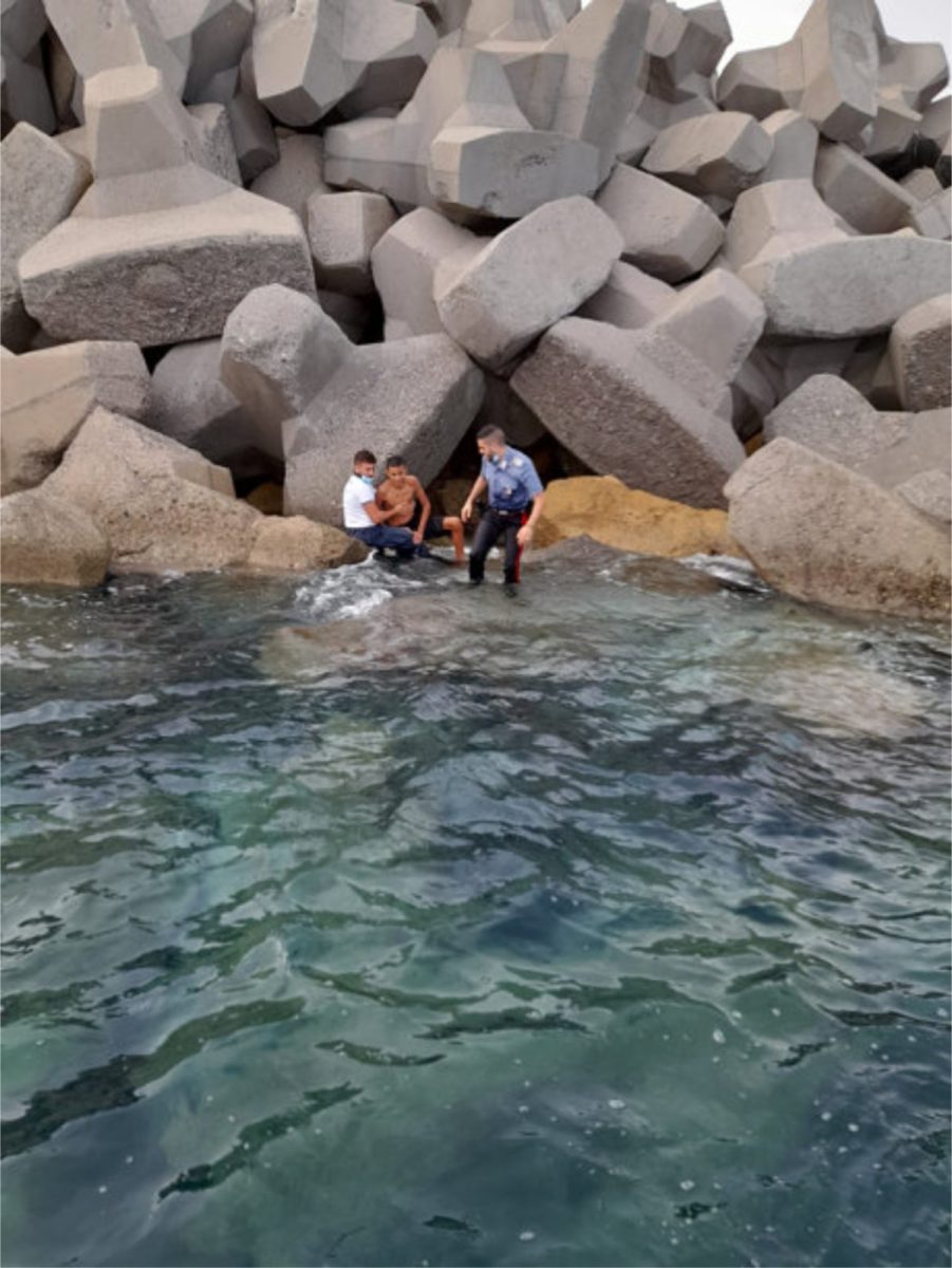 Dopo pochissimo tempo l’avvistamento da mare. Il ragazzo era nascosto tra gli scogli di protezione esterni al molo foraneo sud, disorientato e ferito al capo e ad una gamba dopo una caduta di circa 7 mt dal muraglione del molo.