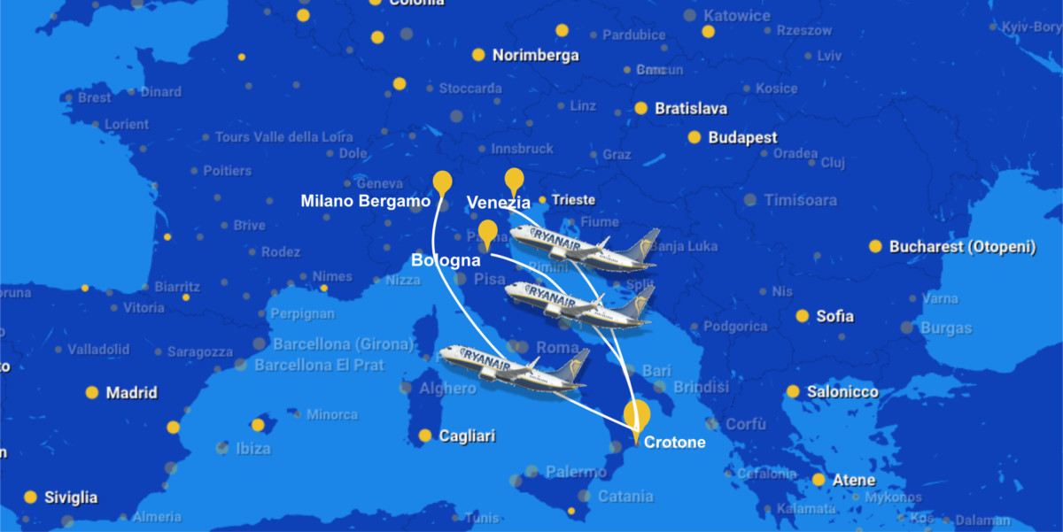 Ryanair ha aperto nuove basi in Italia: Venezia e Torino.Ryanair proprio ieri ha annunciato il volo Crotone-Venezia da marzo 2022.Ora chiediamo visto che anche Torino è una base Ryanair l’istituzione del volo Crotone-Torino.E’ un volo importante per il territorio crotonese che noi chiediamo da anni ed ora sarebbe molto più semplice da concretizzare.