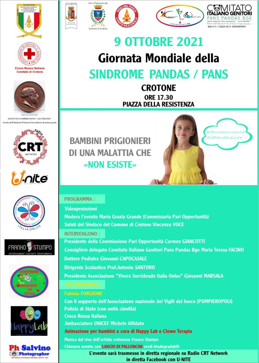 A tal proposito, al fine di catturare l’attenzione dei medici per il consequenziale riconoscimento diagnostico della sindrome PANDAS/PANS, il Comitato Italiano Genitori Pans Pandas Bge con il patrocinio del comune di Crotone e la commissione delle Pari Opportunità, ha organizzato un’iniziativa in Piazza della Resistenza alle ore 17.30 alla quale interverranno diverse autorità civili, politiche, alcuni dottori e rappresentanti del settore medico, tra cui la Croce Rossa Italiana.