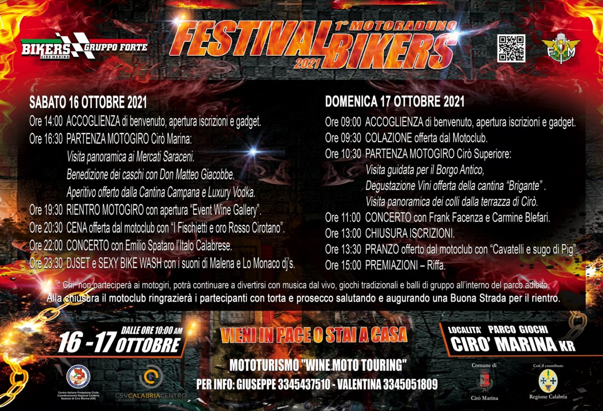 Il 1° Motoraduno Festival Bikers nasce da un progetto che mira ad avere una rilevanza regionale importante, coinvolgendo un pubblico ampio e vario, considerando anche il periodo di svolgimento, attirerà una importante partecipazione di Bikers, si deduce dalle prenotazioni che arrivano giornalmente dalla Calabria, Sicilia e Puglia.