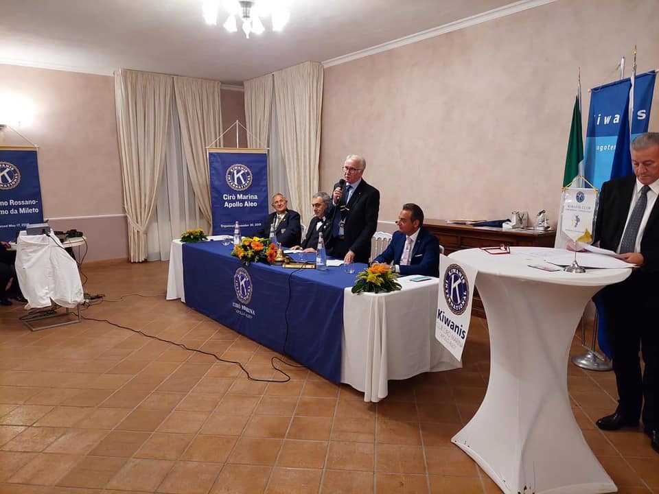 Passaggio della Campana del Kiwanis Club Cirò Marina “Apollo Aleo”. Alla presenza del Luogotenente del Governatore Franco Vollaro si è tenuto nella serata di sabato scorso, il consueto passaggio delle consegne tra il Presidente Carlo Rizzo e il nuovo presidente, Antonio F. Amodeo. Erano presenti alla serata il Sindaco di Cirò Marina, Sergio Ferrari, il sindaco di Melissa, Raffaele Falbo, esponenti di associazioni locali il presidente della Fidapa e i club di Rossano Corigliano Castrovillari Vibo Cosenza. Dopo aver illustrato il lavoro svolto in questo difficile periodo di pandemia, il prof. Carlo Rizzo ha passato la campana al nuovo Presidente Arch. Antonio Francesco Amodeo. I punti cardini del programma del nuovo anno sociale 2021-2022 illustrati dal Presidente speranzoso del ritorno alla normalità, sono stati: Collaborazione per mantenere ed esercitare nella società quelle sane concezioni e nobili ideali che rendono possibile una società migliore; provvederea rafforzare le sane amicizie e rendere servizi nell’interesse comune; sviluppare e propagare la collaborazione disinteressata con il prossimo; promuoverela ricerca ed il raggiungimento dei più alti livelli sociali lavorativi e professionali. “Per questo, ha detto il neo presidente, occorre un’azione propositiva sui vari temi che affliggono il nostro territorio, dai club service dovrebbero partire tali azioni che i club a volte lo fanno a volte riescono meno negli intenti.” Ed ha ancora aggiunto: “Registriamo tutti una società in preda ad una crisi di valori, principi, siamo diventati un pò tutti più brutti dentro, per questo sarebbe necessario incoraggiare la regola d’oro, e cioè, fai agli altri ciò che vorresti che gli altri facessero a te.” Punta di forza del Kiwanis sono i bambini . “ I bambini sono come i marinai : dovunque si posano i loro occhi è l’immenso” (Christian Bobin) in tal senso oltre alle iniziative calendarizzate dal Governatore metteremo in campo iniziative rivolte ai bambini di tutto il mondo ma anche del nostro territorio e in questo, spero nella collaborazione dei sindaci, dei centri di maggiore influenza del Kiwanis Cirò Marina Apollo Aleo. Il team che sosterrà il Presidente Amodeo in questo nuovo anno sociale è così composta : Vic. Presidente,Nicodemo Mingrone; Segretario,Francesco Lionetti; Tesoriere Vincenzo De Franco; Cerimoniere: Filomena De Fine; Web Master: Daniela Falvo. Durante la serata, il club ha visto l’ingresso di un nuovo socio nella persona di Giogio Pucci.