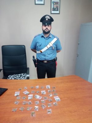 Durante il controllo, nonostante fosse stato apparentemente bloccato, il giovane è riuscito prima a divincolarsi e, allontanandosi, a gettare per terra una busta in plastica trasparente contenente 37 dosi preconfezionate di “marijuana”, aventi un peso di 35 grammi, venendo successivamente rintracciato e fermato, poco dopo, in una vicina strada del centro cittadino.