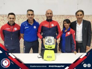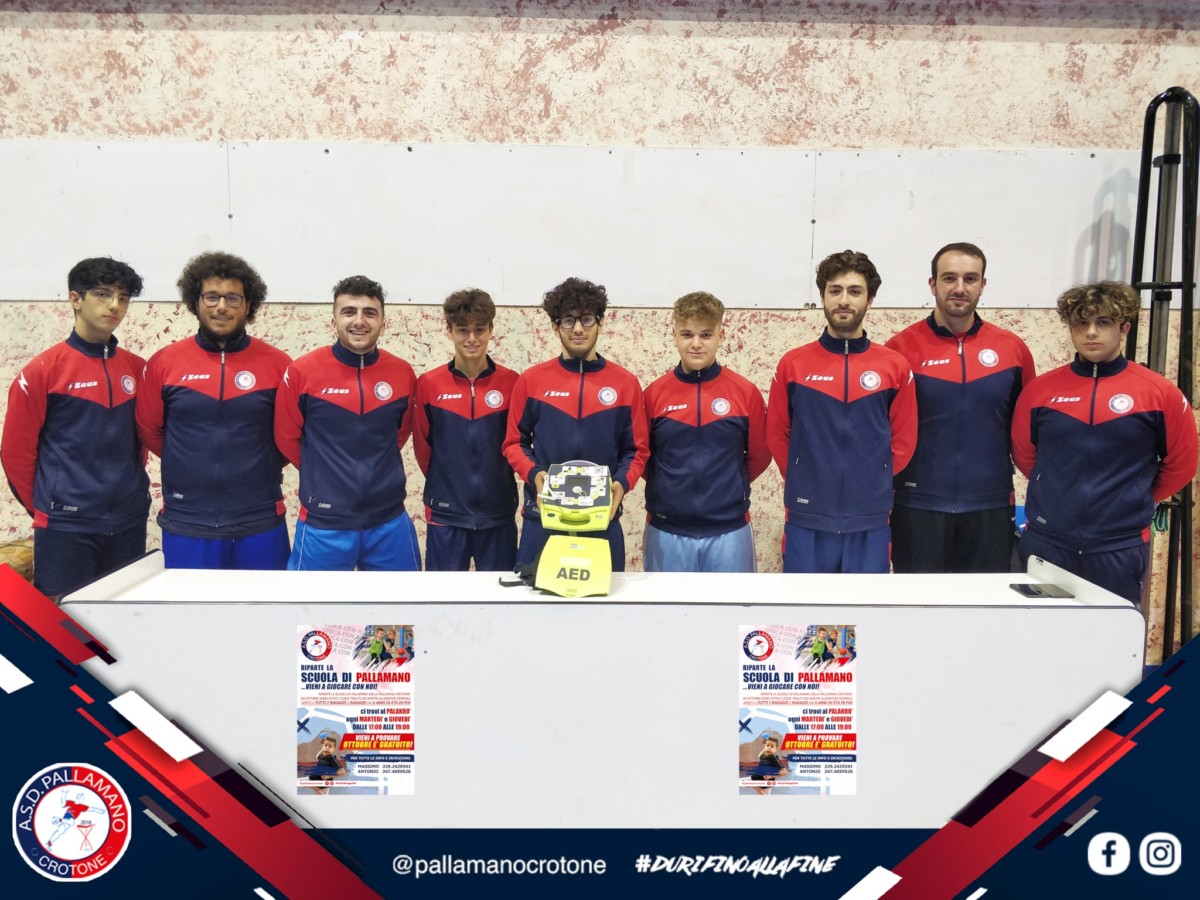 Nella serata di venerdì 22 ottobre, al Palakrò è avvenuta la consegna di un defibrillatore automatico esterno modello Aed Plus donato dal Centro Fisiokinesiterapico Star Bene alla Pallamano Crotone soprattutto grazie all’impegno del dottor Michele Maffei. Con tale iniziativa l’Asd Pallamano Crotone ha ulteriormente migliorato la sicurezza e la tutela dei propri atleti, sia adulti che ragazzi in età pediatrica, nel pieno rispetto di quanto è previsto dalle leggi vigenti. È noto infatti quanto l’arresto cardiaco rappresenti un evento imprevedibile, spesso causato da aritmia ventricolare che può essere interrotta con uno shock elettrico: le manovre salvavita e la defibrillazione precoce possono arrivare a triplicare la sopravvivenza degli infortunati. È per questo che la sensibilità mostrata da parte del Centro Fisiokinesiterapico Star Bene nei confronti della Pallamano Crotone rappresenta un esempio concreto del sostegno di cui sono capaci le imprese del territorio nei confronti delle associazioni sportive e dei suoi numerosi giovani atleti.