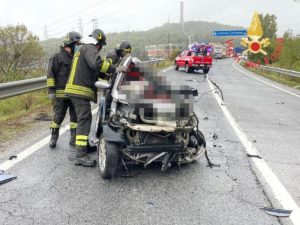 Il conducente della vettura a seguito dell’impatto è deceduto sul colpo mentre il conducente dell’autocarro affidato alle cure del personale sanitario del Suem118 veniva trasportato presso struttura ospedaliera. Il