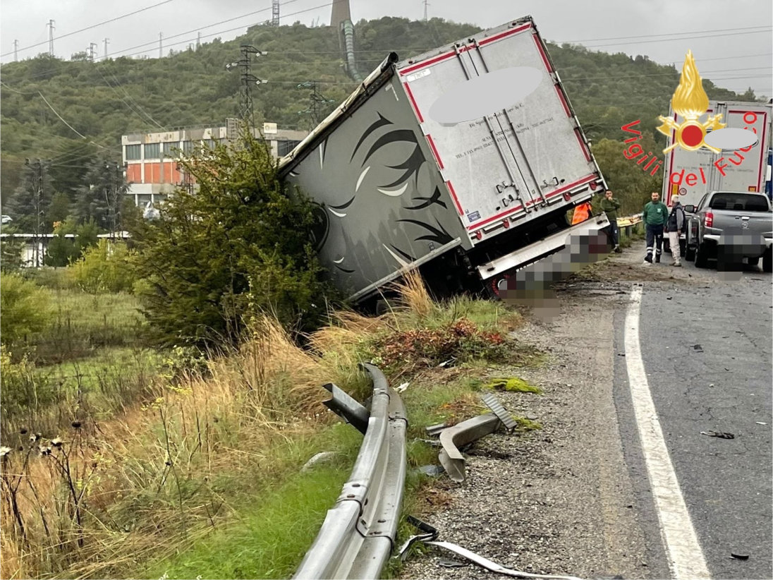 stradale. Giunti sul posto le unità vigilfuoco constatavano lo scontro frontale tra una vettura Smart ed un autocarro che terminava la sua corsa aldilà della sede stradale.
