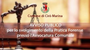 “Avviso publico per lo svolgimento della Pratica Forense presso l’Avvocatura Comunale” E’ aperta ai laureati in giurisprudenza che intendono svolgere la professione legale, la pratica legale presso l’Avvocatura Comunale, propedeutica all’esame di abilitazione per l’esercizio della professione forense.