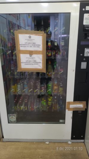Nell’ambito delle attività di controllo amministrativo effettuate dalla Questura di Crotone, in particolar modo da personale della Divisione PASI – Squadra Amministrativa collaborato in tale circostanza da personale dell’UPGSP della Questura, nella serata del 7 dicembre 2021 è stato svolto un mirato servizi di controllo presso un esercizio di commercio al dettaglio per mezzo di distributori automatici, sito nel centro di Crotone.