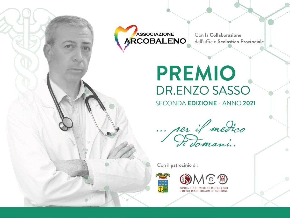 Borsa di studio in onore del Dr. Vincenzo Sasso, prematuramente scomparso, per i giovani che si iscrivono alla facoltà di Medicina e Chirurgia o Odontoiatria. A consegnare il premio come rappresentante della famiglia Sasso era presente il figlio Giuseppe il quale per la seconda edizione ha premiato Francesco Giuseppe Pirito di Cirò Marina, selezionato dalla Commissione Giudicante composta da 3 membri del Consiglio Direttivo dell’Associazione “Arcobaleno” e da 2 componenti esterni designati dal Consiglio Direttivo dell’Associazione, scelti tra eminenti personalità della medicina e della cultura della Provincia di Crotone.
