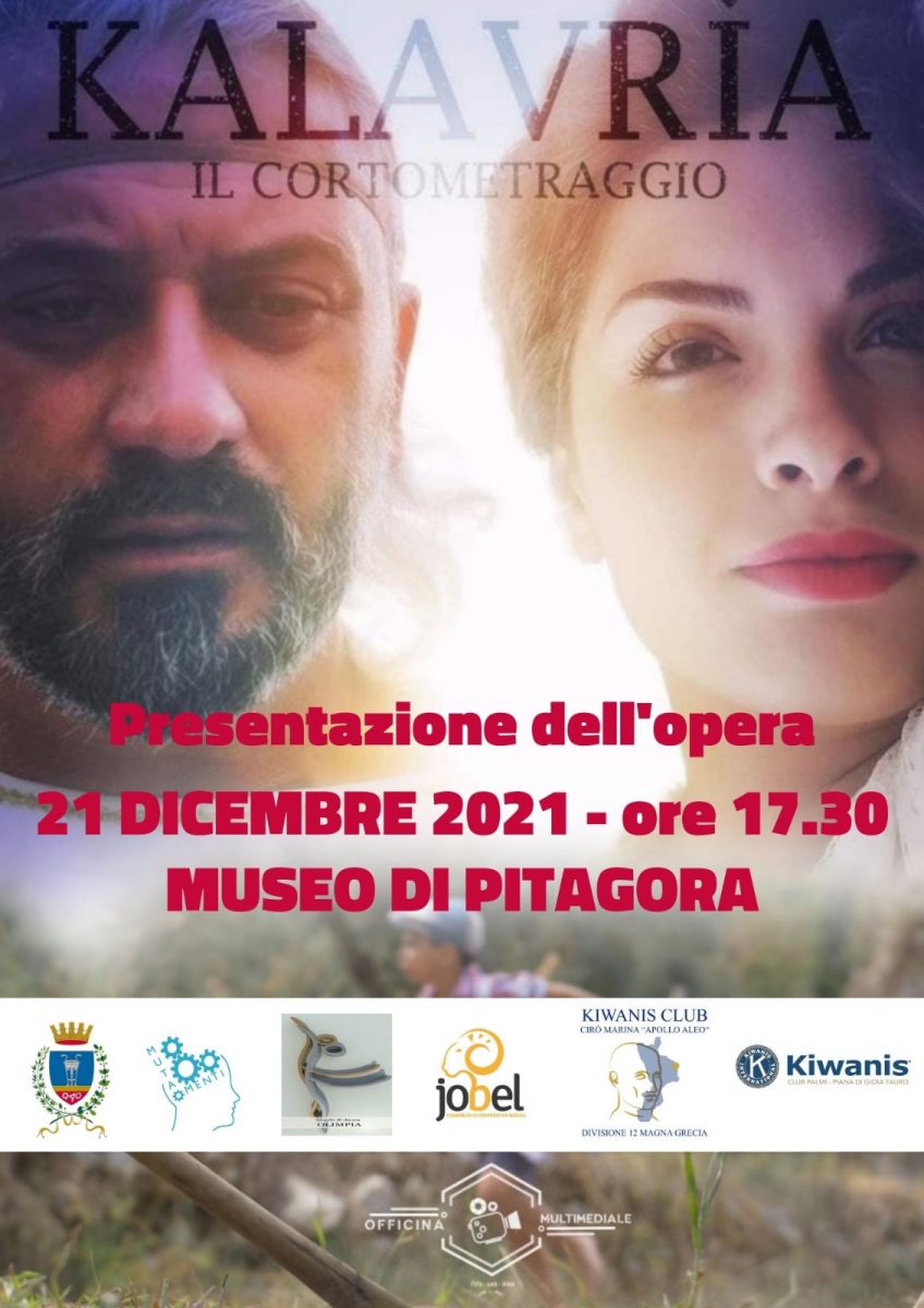Annunciamo la presentazione di KALAVRIA, il cortometraggio che racconta la storia della Calabria e ne esalta il suo passato quando era conosciuta come la Magna Grecia. Realizzato con la regia di Marco Morganti, le riprese di Saverio Mauro e nato dalla penna e dall’idea di Emmanuele Saccà, Il corto KALAVRIA, (Calabria in grecanico) sarà presentato il 21 Dicembre alle ore 17:30 al Museo e Giardini di Pitagora di Crotone. La serata sarà aperta dalla Scuola di danza Olimpia – “Le Krotoniadi” settore danza Magno Greca e si parlerà di Crotone, la città di Pitagora, Milone e Democede, la città che con il suo nome “Kroton” occupa i primi capitoli dei libri di storia e filosofia del Liceo e dell’Università.