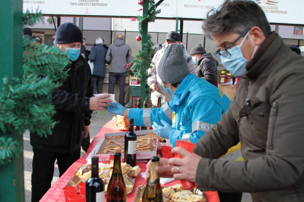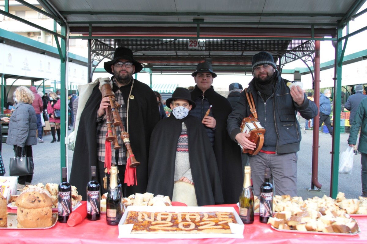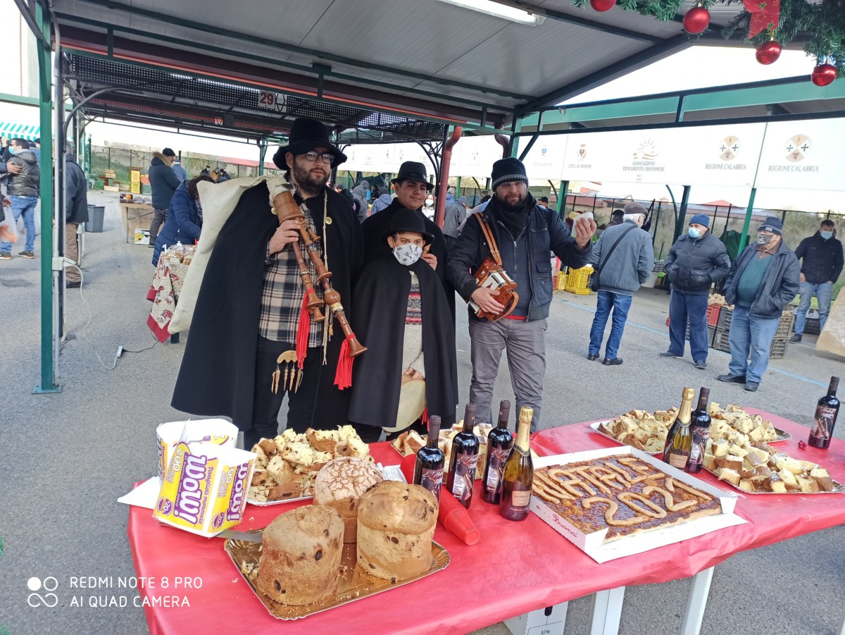 “Povira panza mia, povira panza ca su ti pensu iu…cu ti pensa”. Con questo brano, ideale per il contesto, i pifferi magici e la nostalgica zampogna del gruppo Zampognari di Santa Severina, hanno aperto il Santo Natale del Farmer’s Market di Crotone.