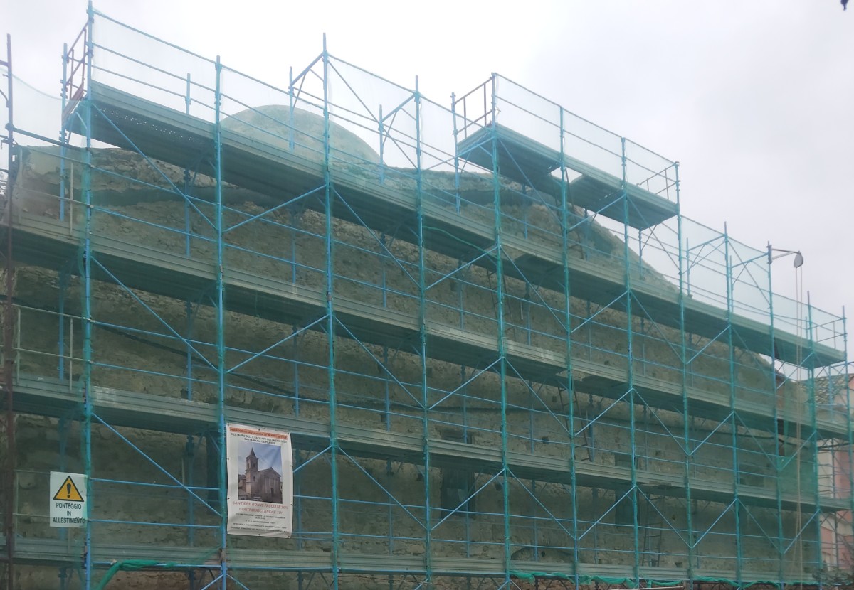 Probabilmente si tratta del primo ingresso della Chiesa Santa Maria de Plateische dava accesso all’antica cappella interna dedicata a Santo Stefano, Santo raffigurante sull’altare a firma del pittore Basile della scuola napoletana. “Con immensa gioia come Parroco – scriveva in una nota Don Matteo Giacobbe- insieme all’ Ufficio Tecnico Diocesano e al Comune di Cirò, diamo inizio ai lavori di restauro della nostra amata Chiesa Madre”. Un grazie in particolar modo- scriveva in una nota il parroco- va al nostro amato Arcivescovo Angelo Raffaele Panzetta per aver preso a cuore da subito la nostra difficoltà pastorale; la CEI per aver posto attenzione al nostro paese e sostenendoci con un valido contributo. I lavori sono eseguiti dalla ditta “Varano costruzione S.R.L.” di Rocco e Pasquale Varano e, ai Direttori dei lavori :Architetti Giovanni Ciccopiedi, Nicodemo Gagliardi; e Vittoria Giardino. Cirò risplenderà presto anche con la sua Chiesa Madre- ha concluso Don Matteo. “La comunità tutta, l’intera amministrazione comunale- scrive in una nota il sindaco Francesco Paletta- si dovranno sentire orgogliosi di questo inizio lavori che rappresenta, me lo auguro, il preludio di altri e necessari interventi sui beni culturali, prima fra tutti il nostro castello”. Si tratta di un contributo devoluto dalla CEI per circa 600 mila euro a cui si aggiungono altri 180 mila euro provenienti dal bonus facciata, somme che porteranno al suo antico splendore l’antica Cattedrale dedicata a Santa Maria de Plateis, a cui vanno aggiunti i 30 mila euro provenienti dalle Royalty da parte dell’amministrazione comunale, e ai fondi reperiti dal parroco. Grazie dunque al parroco don Matteo Giacobbe che si è speso in prima persona per reperire fondi, riuscendo ad unire tutte le forze per rendere realizzabile questo immane lavoro che consentirà di restituire all’antica chiesa madre di ritornare al suo antico splendore. La chiesa era stata chiusa per le continue infiltrazioni dal tetto che lo aveva reso pericoloso per l’incolumità pubblica lo scorso 30 agosto del 2018. La Chiesa di Santa Maria de Plateis è la chiesa madre di Cirò. Si trova nel centro storico della cittadina dove probabilmente era attestata una preesistenza risalente al XIII-XIV secolo, edificio di culto costruito dagli abitanti che erano fuggiti dalla Marina l’allora Cremissa, per scappare dalle incursioni dei Saraceni. La facciata è composta da quattro colonne finte su un alto basamento che decorano l’ingresso. L’interno è a tre navate con un soffitto formato da finti cassettoni colorati di azzurro. Particolare anche l’altare maggiore realizzato in marmo policromo, decorato da disegni floreali di colore chiaro che contrastano con il fondo più scuro. La Chiesa subì varie disgrazie: nel 300 un saccheggiamento da parte dei Veneziani rubando due incensieri e un grande crocefisso d’argento; nel 1631 invece ci fu un incendio che distrusse gli arredi sacri; nel 1694 fu saccheggiata dai Turchi che il tabernacolo, calici, incensieri, croci d’argento e quadri; inoltre ci furono dei terremoti che la distrussero quasi totalmente. I lavori dell’attuale chiesa iniziarono nel 1837 e fu riaperta al culto nel 1843. All’interno vi si accede attraverso una scalinata. L’interno è a tre navate con transetto sormontato da una grande cupola affiancata a destra e a sinistra da altre due cupolette che formano una croce. La navata centrale è ritmata da una successione di robusti pilastri a sostegno delle arcate. In alto si trova lo stemma di Cirò. Dietro l’altare c’è il coro e da esso si accede a sinistra nella sala dell’antica Congregazione del Santissimo e a destra nella sagrestia. La navata destra ha tre altari quello di S. Antonio, della Madonna di Pompei e di S. Rita in adorazione ai piedi di Gesù. In fondo alla navata si può ammirare la cappella di S. Francesco di Paola, patrono e protettore di Ciro. A destra dell’entrata è stato posto il fonte battesimale e una statua dell’Immacolata. La navata sinistra presenta due altari: quello della Madonna del Carmine e quello dell’Addolorata con Gesù morto. Sul fondo della navata c’è la Cappella del Santissimo coperta da marmi pregiati e da mosaici. A sinistra dell’ingresso si trova una scala che porta sul campanile con in cima l’orologio. Una chiesa importante che attende dopo il suo restauro la sua riapertura , i cittadini e i fedeli attendono ormai da tre anni, un pilastro dell’architettura cirotana .