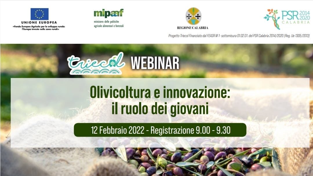 Prosegue senza soste il percorso di Triecol, il progetto promosso dalla sede di Rende del Centro di Ricerca Olivicoltura, Frutticoltura e Agrumicultura del CREA (CREA OFA), finanziato attraverso la misura 1, sottomisura 1.2.1 “Sostegno per progetti dimostrativi e azioni di informazione” del Psr Calabria 2014/2020. I ricercatori e gli imprenditori agricoli coinvolti nel progetto stanno affrontando le tematiche salienti dell’olivicoltura, focalizzandosi su potenzialità, opportunità e problematiche della filiera, al fine di promuovere uno sviluppo sostenibile del settore, attraverso l’innovazione tecnologica. E per garantire la qualità, la modernità e la redditività, insieme alla tutela dell’ambiente, Triecol, attraverso una serie di webinar informativi/divulgativi, sostiene con fermezza la necessità di un collegamento costante ed efficiente tra il mondo della ricerca scientifica e quello dell’imprenditoria agricola, al fine di garantire con continuità il trasferimento delle conoscenze agli olivicoltori. L’argomento che sarà approfondito nel prossimo webinar del progetto, fissato per sabato 12 febbraio alle ore 9:00, riguarda il ruolo dei giovani nell’olivicoltura e nell’innovazione. Tematica molto attuale, alla luce delle politiche nazionali e comunitarie che spingono verso un ricambio generazionale in agricoltura, al fine di modernizzare il settore, non solo con il trasferimento delle conoscenze alle nuove generazioni, ma anche attraverso attrezzature, metodiche e innovazioni di prodotto e processo che siano al passo con i tempi.
