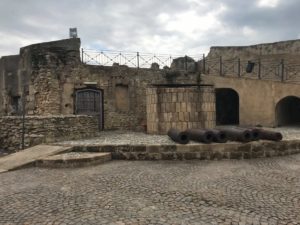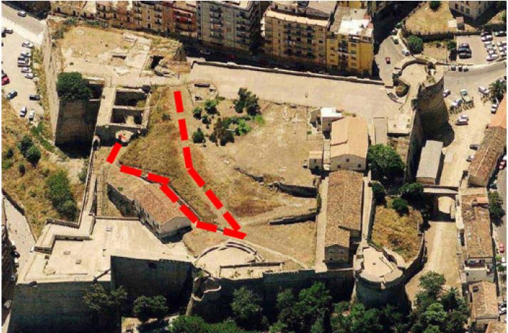 Percorrendo le scale interne del Bastione San Giacomo, che si presentano poco regolari, è possibile giungere all’esterno del Castello Carlo V, mediante la postierla detta “Le Sette Porte”, che conduce all’orto botanico posto ai piedi dello stesso Bastione.