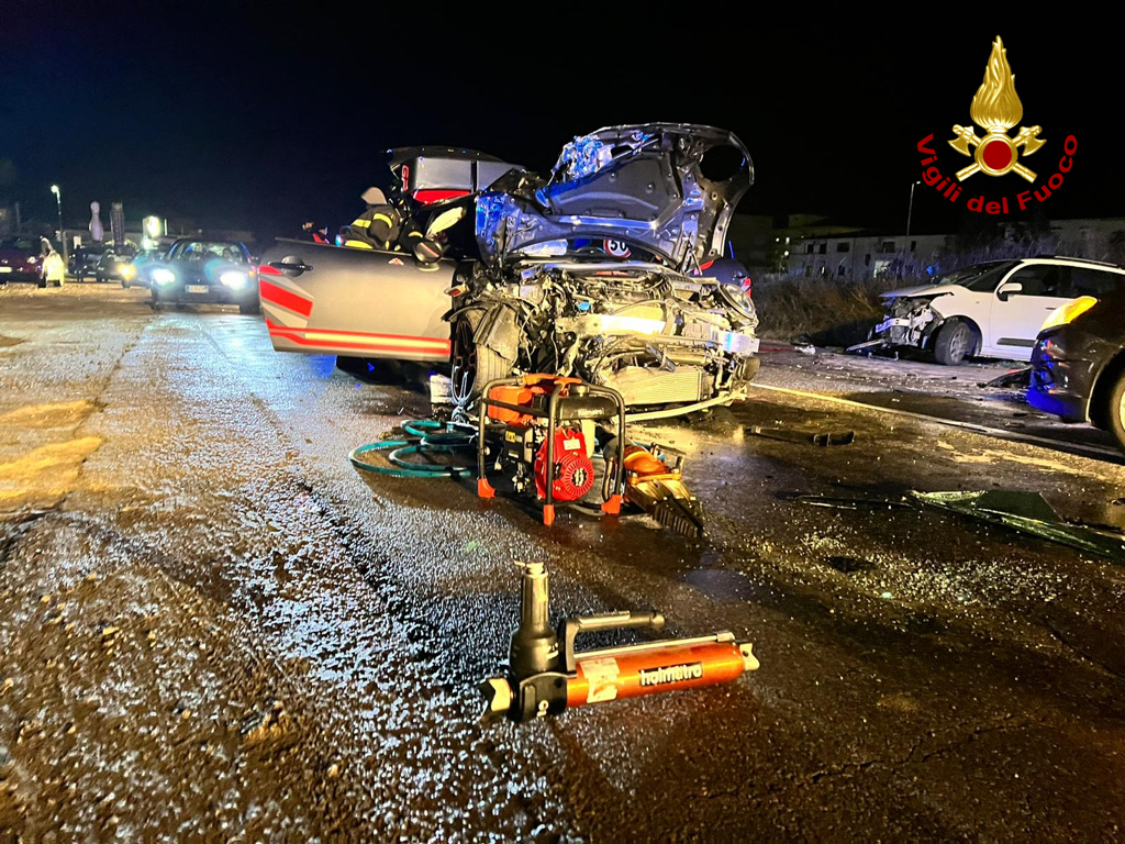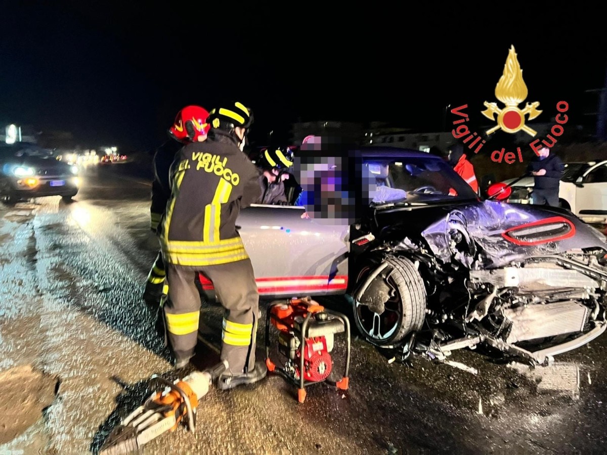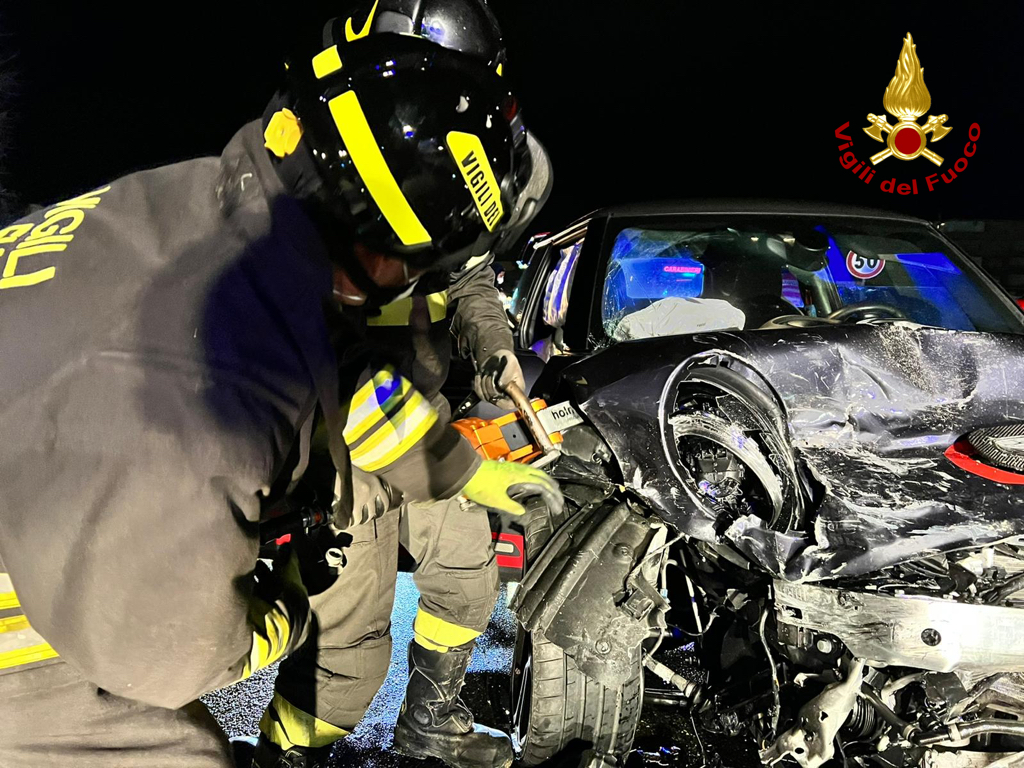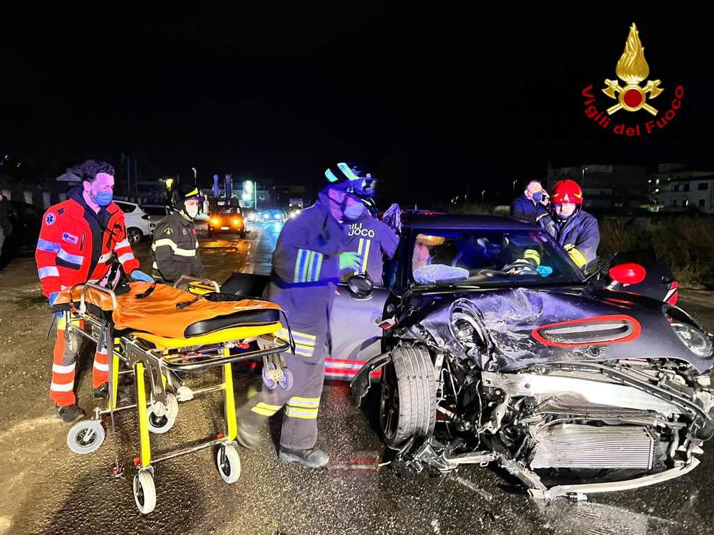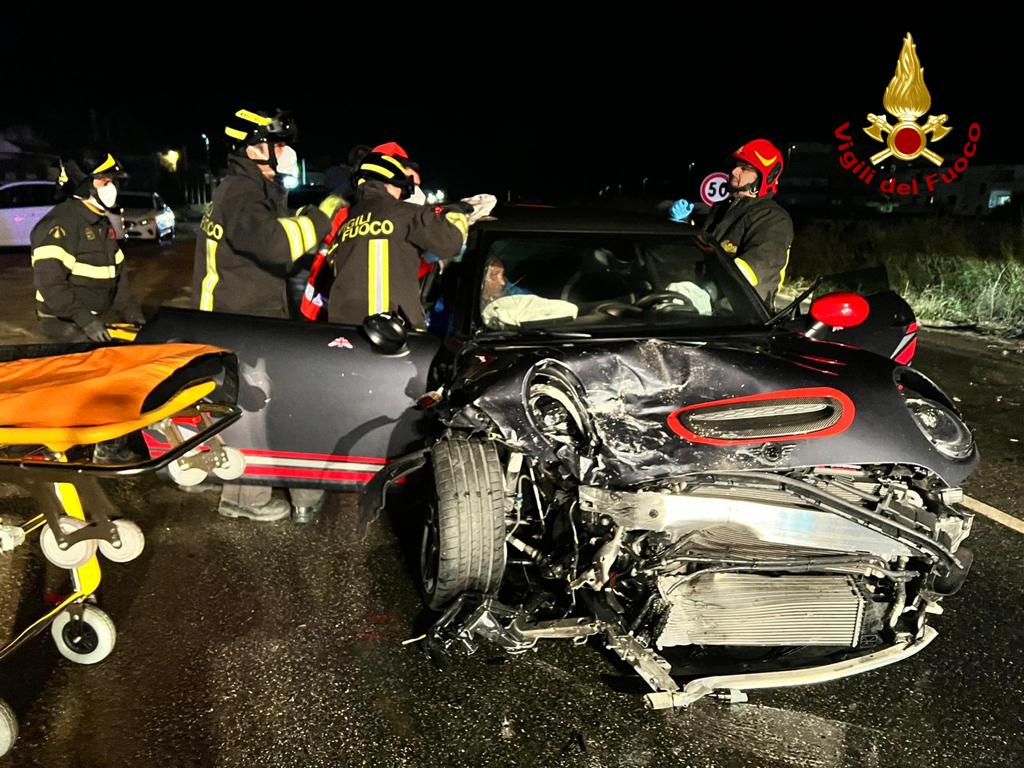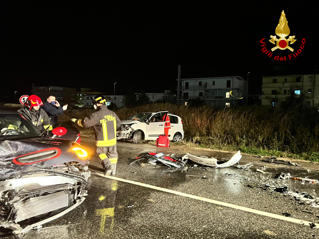 Arrivati sul posto al km 245 sulla statale 106, vi erano due auto coinvolte da scontro frontale, una Mini Cooper e una Citroen Picasso.