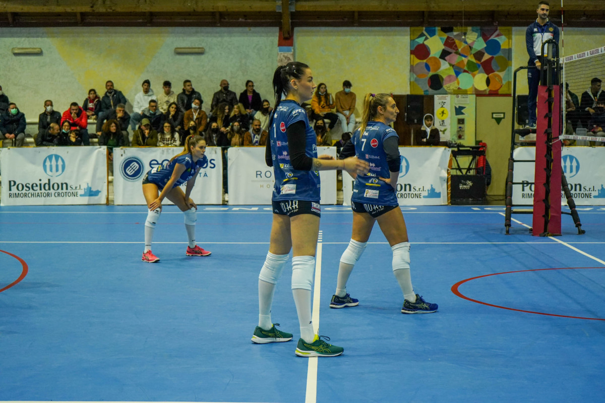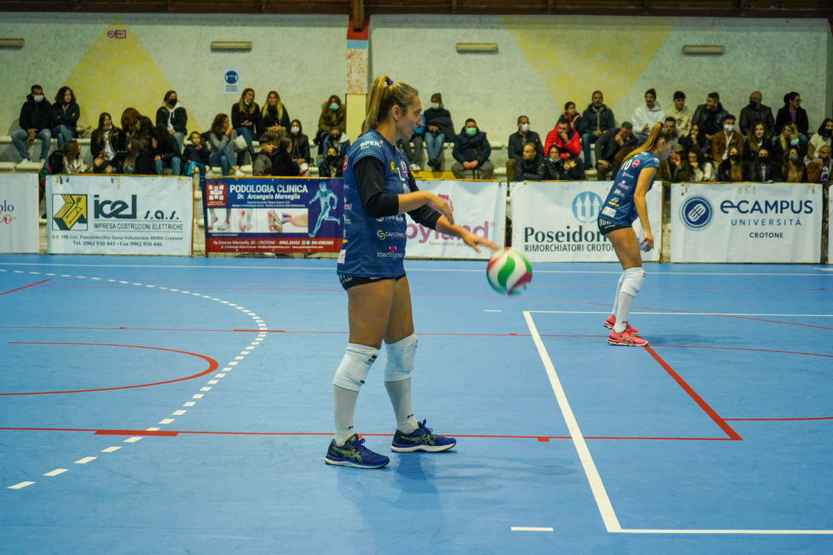 Sulla situazione di doppio vantaggio della formazione campana, il Crotone ci prova con l’orgoglio, Capponi, Cosentino e Cesario provano a cambiare il gioco e le tecniche di attacco ma non sorprendono la formazione ospite. Il 3/0 sembra il risultato logico, l’orgoglio del Crotone, davanti al proprio pubblico sempre caloroso, permette grazie ad alcune soluzioni di attacco ad arrivare a 16 punti ma nulla si può fare oltre per cui la capolista continua il viaggio verso la B1.