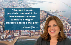 “Sento il dovere e la responsabilità di tutelare il territorio nel quale vivo, perché il mio impegno politico continua con la sola umile funzione di voler rappresentare le persone che in me hanno riposto la loro fiducia. Lo devo a loro, ai tanti giovani che desiderano restare nella nostra Calabria, ai miei figli, a me stessa. Perché, semplicemente, amo la mia terra e desidero prendermene cura. Crotone è la provincia “fanalino di coda” di una regione che a sua volta è “l’ultima ruota del carro” d’Italia. Non è un volersi compiangere ma una mera analisi della realtà. Una realtà che deve necessariamente cambiare o meglio, crescere: adesso o mai più!”. Sono queste le parole di Carmen Carceo, coordinatore provinciale per Crotone di Cambiamo Coraggio Italia, inviate con una lettera al Presidente Occhiuto. Un grido per il suo territorio, nella speranza di una netta inversione di tendenza regionale e locale.