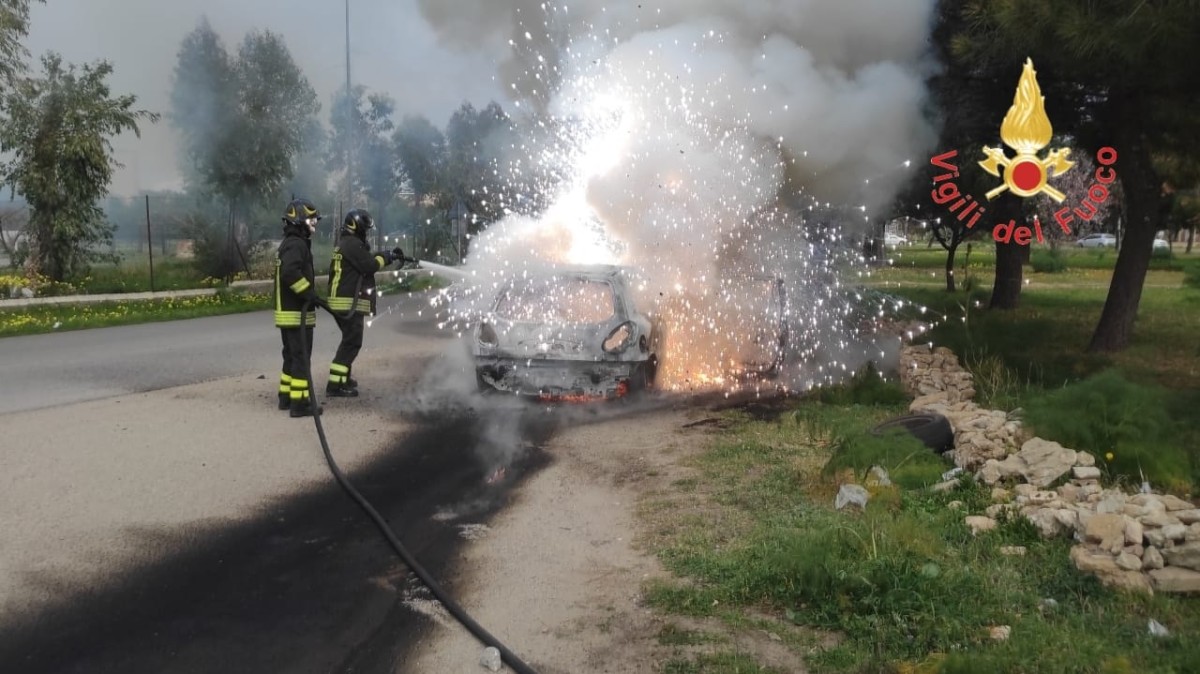 La vettura interessata una Fiat Bravo in transito. A bordo una coppia di anziani che accortisi del fumo fuoriuscire dal vano motore accostavano il mezzo bordo strada abbandonando lo stesso prima che venisse completamente avvolto dalle fiamme.
