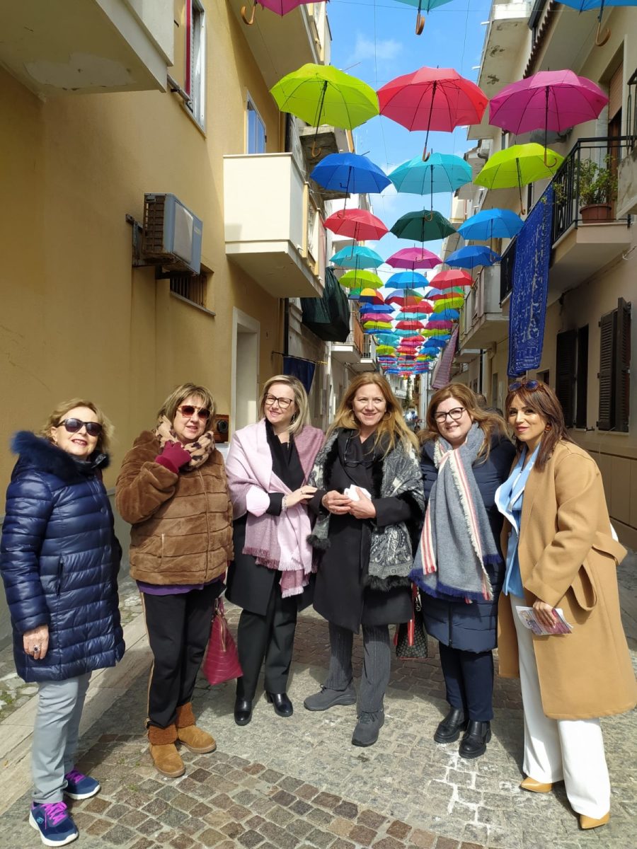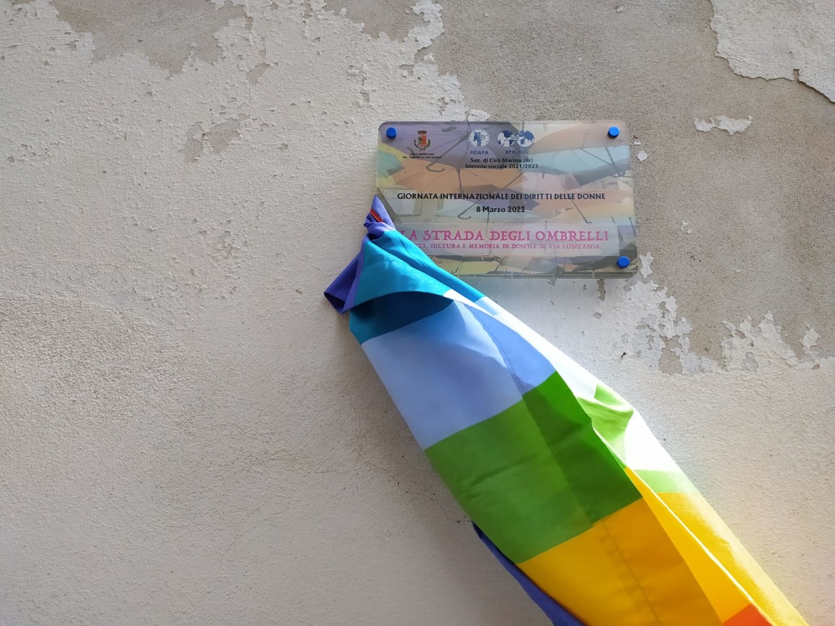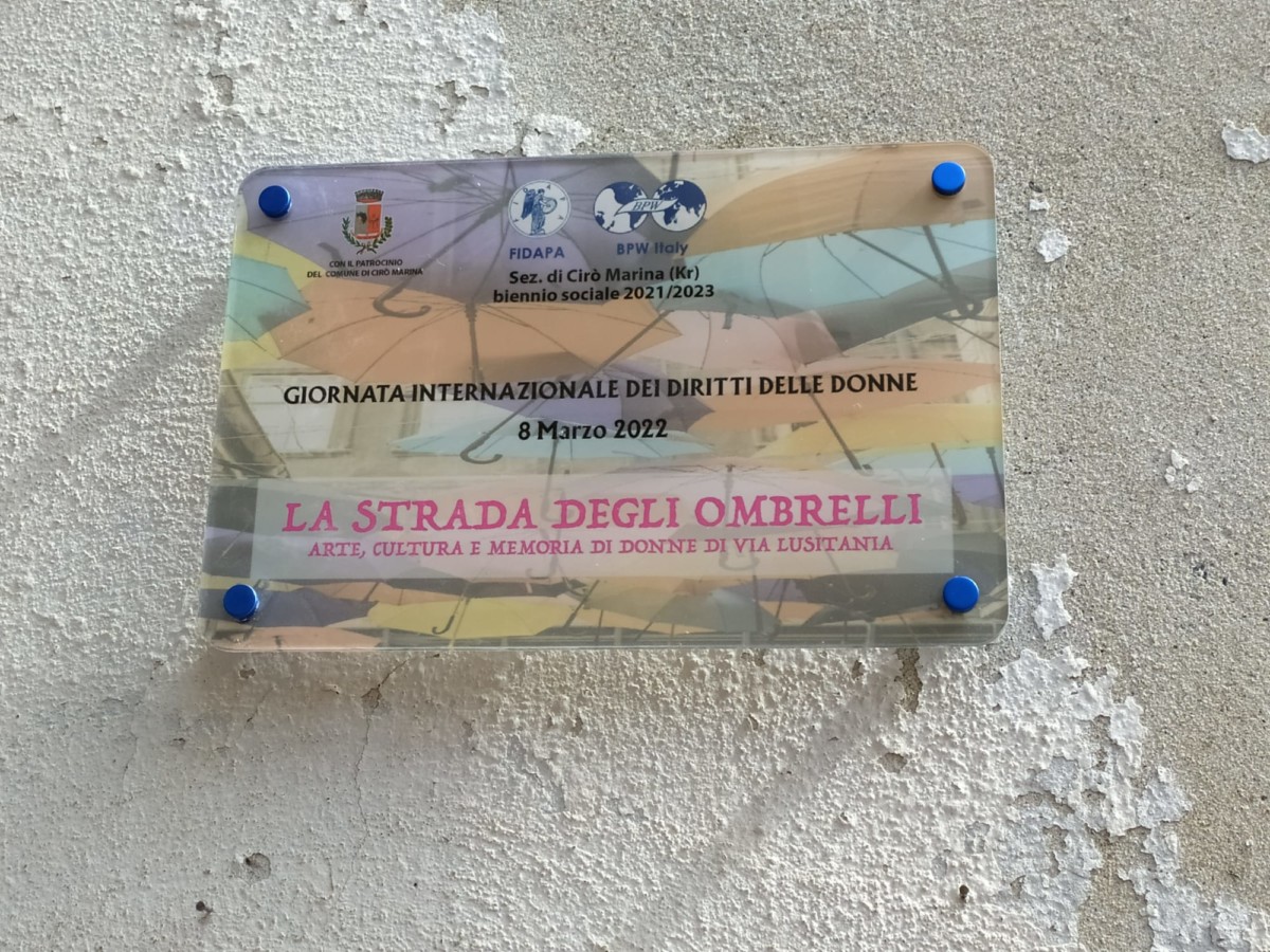La guerra in Ukraina che vede coinvolte in prima persona tante famiglie, mamme, giovani e bambini, con tante donne che fanno parte delle forze armate e stanno lottando per difendere il loro Paese, nella giornata dell’8 marzo, giornata internazionale dei diritti delle donne, si è trasformata in un 8 marzo della resistenza, della resilienza, della vicinanza a quante soffrono, dove hanno trovato posto molte riflessioni e riferimenti all’attuale situazione in cui si trova il nostro mondo. Un 8 marzo quindi di guerra e non di festa nel cuore di tante donne. Il 16 dicembre 1977 l’ONU istituì la “Giornata delle Nazioni Unite per i diritti delle donne e per la pace internazionale”, da tenersi l‘8 marzo di ogni anno per ricordare il ruolo della donna negli sforzi di pace e per sottolineare la necessità di porre fine a ogni tipo di discriminazione nei suoi confronti. In questa giornata che è diventata una ricorrenza celebrata da molti, che riconoscono nelle mogli e compagne, nelle nostre figlie e madri, nelle nostre amiche e colleghe, il contributo prezioso che ciascuna di loro con le proprie virtù e possibilità reca alla comunità intera, non si poteva non dedicare loro un forte pensiero di vicinanza. Di tutti questi sentimenti, riflessioni e pensieri, si è fatta portavoce la Fidapa di Cirò Marina, che nella giornata odierna ha voluto organizzare una giornata dedicata sì, ai diritti delle donne, ma che non si è voluta sottrarre dal lasciare un segno tangibile di questo loro intento, inaugurando in Via Lusitania, nel centro storico della città, “La strada degli ombrelli”.