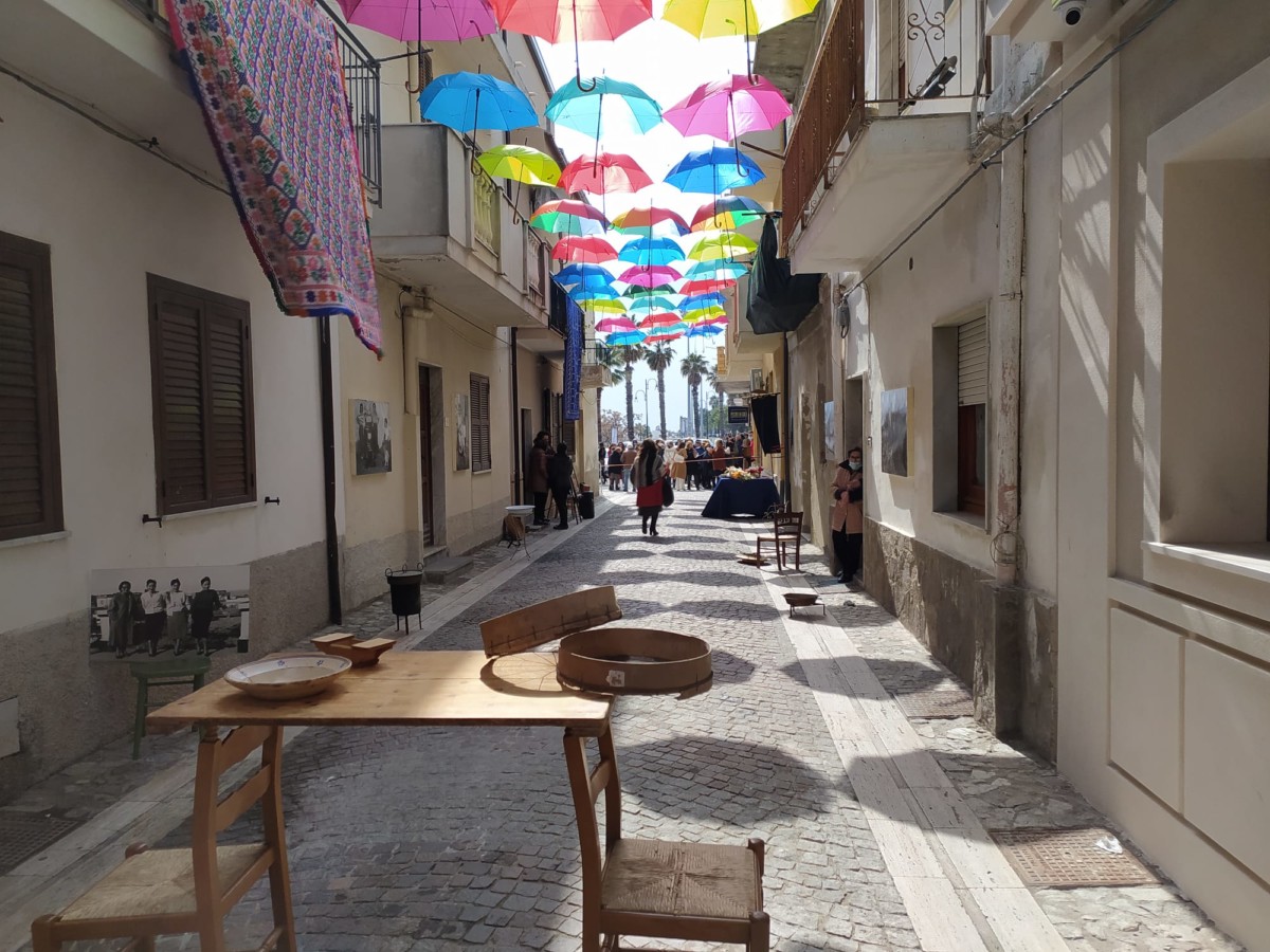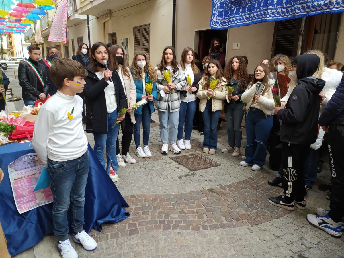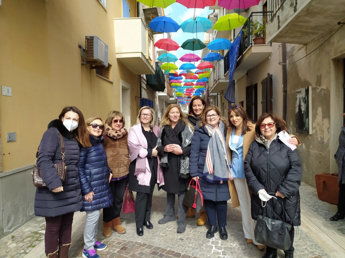 La guerra in Ukraina che vede coinvolte in prima persona tante famiglie, mamme, giovani e bambini, con tante donne che fanno parte delle forze armate e stanno lottando per difendere il loro Paese, nella giornata dell’8 marzo, giornata internazionale dei diritti delle donne, si è trasformata in un 8 marzo della resistenza, della resilienza, della vicinanza a quante soffrono, dove hanno trovato posto molte riflessioni e riferimenti all’attuale situazione in cui si trova il nostro mondo. Un 8 marzo quindi di guerra e non di festa nel cuore di tante donne. Il 16 dicembre 1977 l’ONU istituì la “Giornata delle Nazioni Unite per i diritti delle donne e per la pace internazionale”, da tenersi l‘8 marzo di ogni anno per ricordare il ruolo della donna negli sforzi di pace e per sottolineare la necessità di porre fine a ogni tipo di discriminazione nei suoi confronti. In questa giornata che è diventata una ricorrenza celebrata da molti, che riconoscono nelle mogli e compagne, nelle nostre figlie e madri, nelle nostre amiche e colleghe, il contributo prezioso che ciascuna di loro con le proprie virtù e possibilità reca alla comunità intera, non si poteva non dedicare loro un forte pensiero di vicinanza. Di tutti questi sentimenti, riflessioni e pensieri, si è fatta portavoce la Fidapa di Cirò Marina, che nella giornata odierna ha voluto organizzare una giornata dedicata sì, ai diritti delle donne, ma che non si è voluta sottrarre dal lasciare un segno tangibile di questo loro intento, inaugurando in Via Lusitania, nel centro storico della città, “La strada degli ombrelli”.