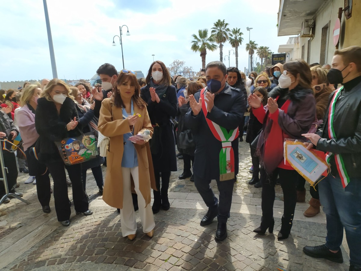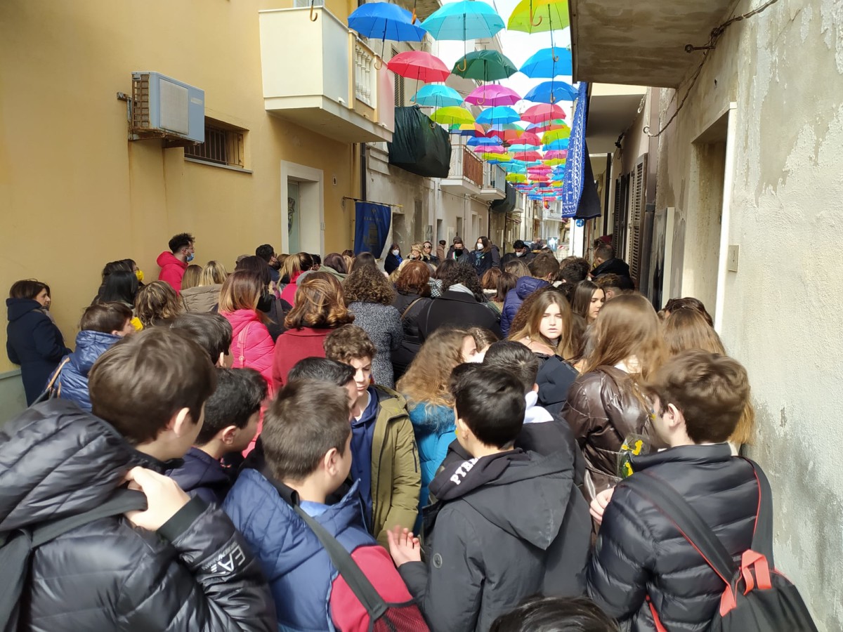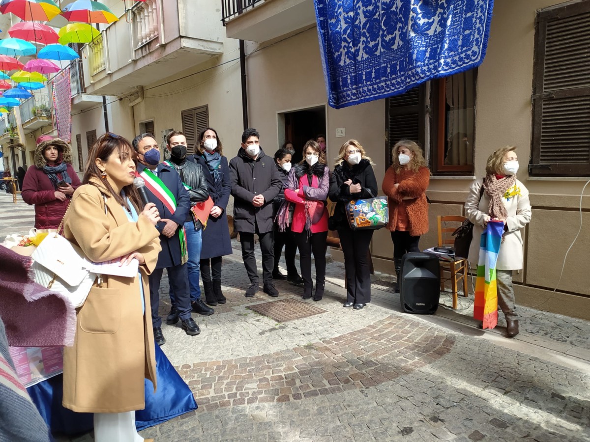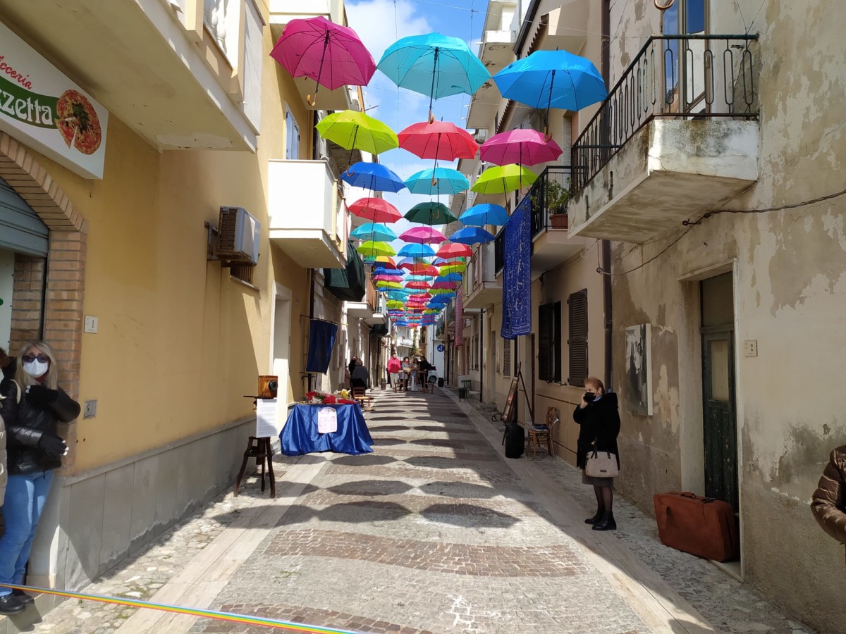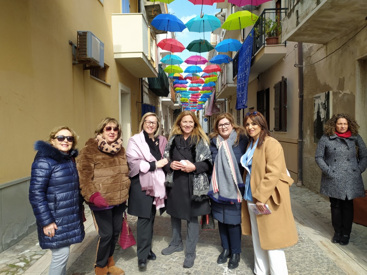 Ombrelli per proteggere simbolicamente tutte le donne, dalla violenza, dai loro affetti, dai loro diritti. Alla presenza del Sindaco, Sergio Ferrari, e dei componenti la giunta comunale intervenuti, la presidente della Fidapa, Anna Russo, ha tagliato il fatidico nastro e inaugurato “la Strada degli ombrelli” che per l’occasione, grazie alla collaborazione con lo studio fotografico Amato, ha esposto lungo la via, vecchie foto che hanno riproposto antiche usanze e personaggi che hanno vissuto in quella via. Fra queste anche l’ex sindaco, Aurora Danili Caparra. Una giornata carica di significati, puntualmente illustrati nel suo intervento dalla presidente della Fidapa, Anna Russo, che ha spiegato come è nata l’idea di dedicare una via della città alla memoria delle donne, fatta propria anche dall’Amministrazione Comunale per voce del Sindaco, Sergio Ferrari, laddove entrambi hanno ribadito l’intenzione di puntare sulla riqualificazione del centro storico con il contributo di tutti, istituzioni e Associazioni. Importante il contributo anche dei due istituti comprensivi, presenti con i loro dirigenti, Giuseppe Di Lillo e Graziella Spinali che hanno sottolineato l’importanza dell’impegno dei giovani e di quanto sia importante il loro coinvolgimento per formare una società più solidale dove possano trovare posto veri sentimenti di pace, tolleranza, solidarietà, ma soprattutto rispetto verso le donne. Sicuramente, in questa giornata, ricordando anche la compianta Antonella Lettieri, alla quale è stato dedicato un momento di doloroso ricordo, la scelta convinta della Fidapa è stata quella di dedicare in una giornata così importante per le sue implicazioni sociali ed umane, un forte momento di riflessione, invitando tutti alla partecipazione attiva per un mondo dove trovino finalmente posto, il riconoscimento del valore delle donne, delle sue capacità, di donne che valorizzano le famiglie soprattutto quando le difficoltà della vita si fanno sentire.