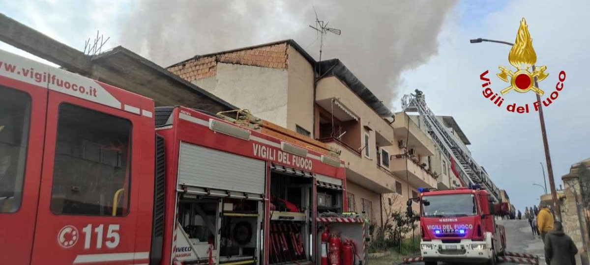All’arrivo sul posto, in via Eugenio Montale a Rocca di Neto, ai vigili del fuoco giunti con tre squadre, autopompa, autobotte, e autoscala la situazione si presentava critica, fuoriusciva fumo denso dal sottotetto di una palazzina di tre piani fuori terra con sottotetto usato come deposito, le fiamme avevano completamente invaso il vano.