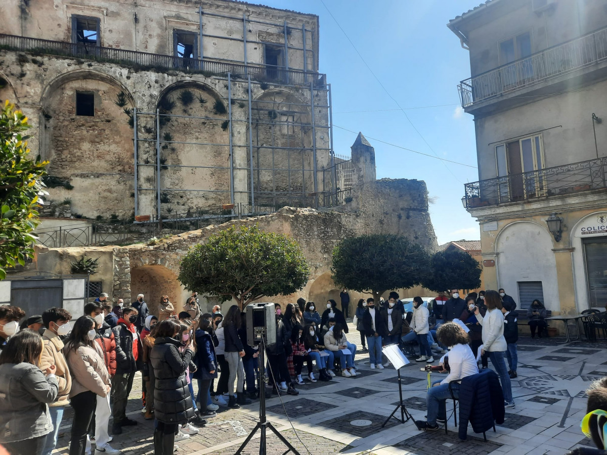 Flashmob sulla pace e sulla Legalità, ricorrendo la giornata nazionale, con i ragazzi dell’istituto Omnicomprensivo in occasione della Conclusione della 9^ giornata Regionale del Calendario in onore a Luigi Lilio. La manifestazione iniziata nella Piazza Pugliese e poi proseguita nella sala del Consiglio comunale per il completamento dei lavori della Commissione incaricata di esaminare i lavori dei ragazzi al premio di matematica dedicata a Luigi Lilio. La giornata fredda è stata scaldata dalle performance sia liriche che canore e musicali dedicate alla popolazione Ucraina che stanno subendo una guerra assurda, ha detto il promo cittadino Francesco Paletta. I vincitori del concorso Giochi matematici su Lilio sono stati proclamati tra l’istituto Omnicomprensivo di Strongoli e l’istituto Omnicomprensivo Lilio di Cirò, tre nella sezione junior e tre nella sezione senior a cui vanno riconosciuti i premi in denaro come previsti dal bando. Un ringraziamento particolare-scrive Paletta- va a tutti i docenti ed i componenti della Commissione a cui ha preso parte anche il professore Francesco Vizza; al parroco Don Matteo, al Comandante stazione Carabinieri di Cirò mar.llo Belcunfine’, al Dirigente scolastico Giuseppe Dilillo. Il Sindaco, ha evidenziato la bellezza dei ragazzi che si sono impegnati nella manifestazione per la pace e la legalità ma anche per l’impegno nel concorso dei giochi matematici. Questo è stato l’anno dedicato soprattutto a loro – prosegue il sindaco- e la formula del concorso dovrà essere indirizzata nel prossimo anno a tutte le scuole superiori della Calabria essendo Lilio un figlio di Calabria. A conclusione dell’evento è stato proiettato in anteprima il cortometraggio realizzato da Gianluca Tommasiello e Valerio Matteu, denominato ” Luigi Lilio ed il borgo antico di Cirò- i quali scrivono in una nota- “Siamo felici di aver dato il nostro contributo artistico nel raccontare la storia di Luigi Lilio e della sua riforma del calendario gregoriano e di poterla far conoscere oltre i confini regionali. Ringraziamo di cuore tutte le persone che ci hanno sostenuto e che hanno dato il loro contributo alla realizzazione di questo progetto. Il cortometraggio ha avuto la Regia di Gianluca Tommasiello e Valerio Matteu; Voce Narrante e Testi: Rocco Tedeschi; Drone: Raffaele Bisignano; con interventi del sindaco Francesco Paletta, del professore Francesco Vizza (Direttore dell’Istituto di chimica dei composti organo metallici (ICCOM) del CNR di Firenze) che ha spiegato la riforma di Lilio; Francesco Mussuto (Assessore alla Cultura del Comune di Cirò); Il Professore Antonino Brosio (Direttore del Parco Astronomico Lilio di Savelli) e Michele Caccia (Gestore del Parco Astronomico Lilio di Savelli.