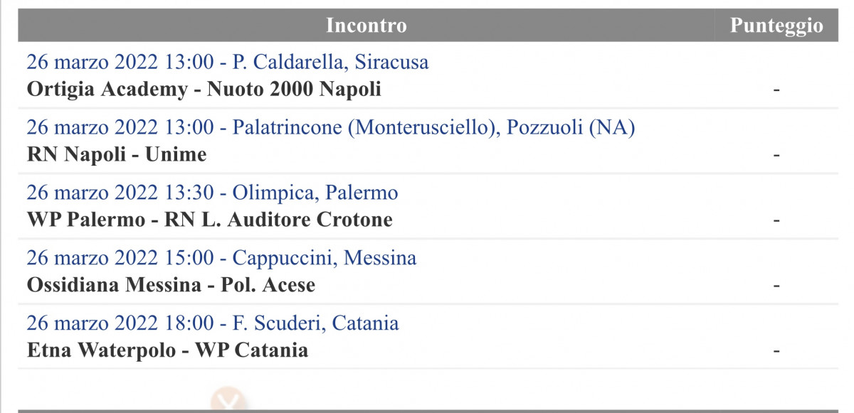 La Waterpolo Palermo, probabilmente la squadra più forte ed attrezzata del Girone 4 per il salto di categoria, ma il sorgere di un focolaio da Covid-19 all’interno della nostro roster, ha impedito che l’incontro possa svolgersi regolarmente e indotto la Federazione Italiana Nuoto ad emettere provvedimento di rinvio.