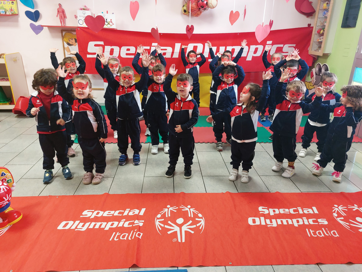 Quando la terribile emergenza sanitaria Covid-19 ha iniziato ad investire chiaramente l’Italia e a seguire il mondo intero, il movimento SOI (Special Olympics Italia) si è trovata costretto a correre ai ripari, o per meglio dire a fermarsi, rinunciando ai Giochi Nazionali Estivi che si sarebbero dovuti svolgere come da tradizione nei primi mesi estivi di ogni anno. La sensazione comune è stata come se, d’improvviso, fossimo stati catapultati indietro nel tempo di 50 anni. Rivivendo quel “tempo vuoto” proprio delle persone con disabilità intellettive e delle loro famiglie, Special Olympics ha sentito forte l’esigenza di attivarsi per affrontare il momento. Così anche se lo sport si è fermato con palestre e strutture chiuse, il Soi ha elaborato e portato avanti un progetto ambizioso riadattando l’opportunità di fare sport Special Olympics per ogni livello di abilità. Hanno implementato i canali social offrendo un programma giornaliero con opportunità quotidiane di allenarsi e, chiedendo di pubblicare i video di ognuno, tenendo così alta l’attenzione sull’importanza dello sport e del sentirsi attivi ed inclusi. Sono nati così gli Special Olympics Italia Smart Games. Gli Smart Games hanno rappresentato e rappresentano oggi, dunque, una sorta di esperimento sociale e sportivo. Non poteva mancare l’importante momento formativo, l’attività del Polo D’Infanzia Baby Kinder Park, che ripetendo l’iniziativa già svolta lo scorso anno, seppur in modalità video, quest’anno ha potuto ripetere l’attività in presenza. Le attività proposte quest’anno da Special Olympic in occasione degli SmartSchoolGames 2022, svoltosi dal 30 marzo a 13 aprile, per il Programma YOUNG ATHLETES ha avuto per tema ” Creiamo la rivoluzione dell’inclusione”. Delle diverse attività proposte, il Polo d’infanzia Baby Kinder Park ha deciso di fare l’attività riguardante la Coreografia ritmica da fare indossando la mascherina di Special Olympics. La fascia di età coinvolta è stata dai 24 mesi ai 5 anni: sez.primavera ” puffi”, I-II-III° livello. Gli smartschoolgames hanno avuto l’obiettivo di riflettere sul contributo che lo sport dà a livello inclusivo, soprattutto nella scuola, in quanto aiuta e stringere relazioni, amicizia e vivere nuove esperienze insieme sperimentando la ricchezza della diversità, ma condividendo emozioni e sensazioni comuni. Perché, come ha detto la Dirigente del Polo D’0Infanzia, Lucia Sacco, “E’ necessario educare dalla primissima infanzia i bambini verso idee di inclusività, condivisione e diversità intesa come ricchezza”, affermazione motivata e realizzata in piena sintonia con la coordinatrice del progetto, Valentina Santoro.