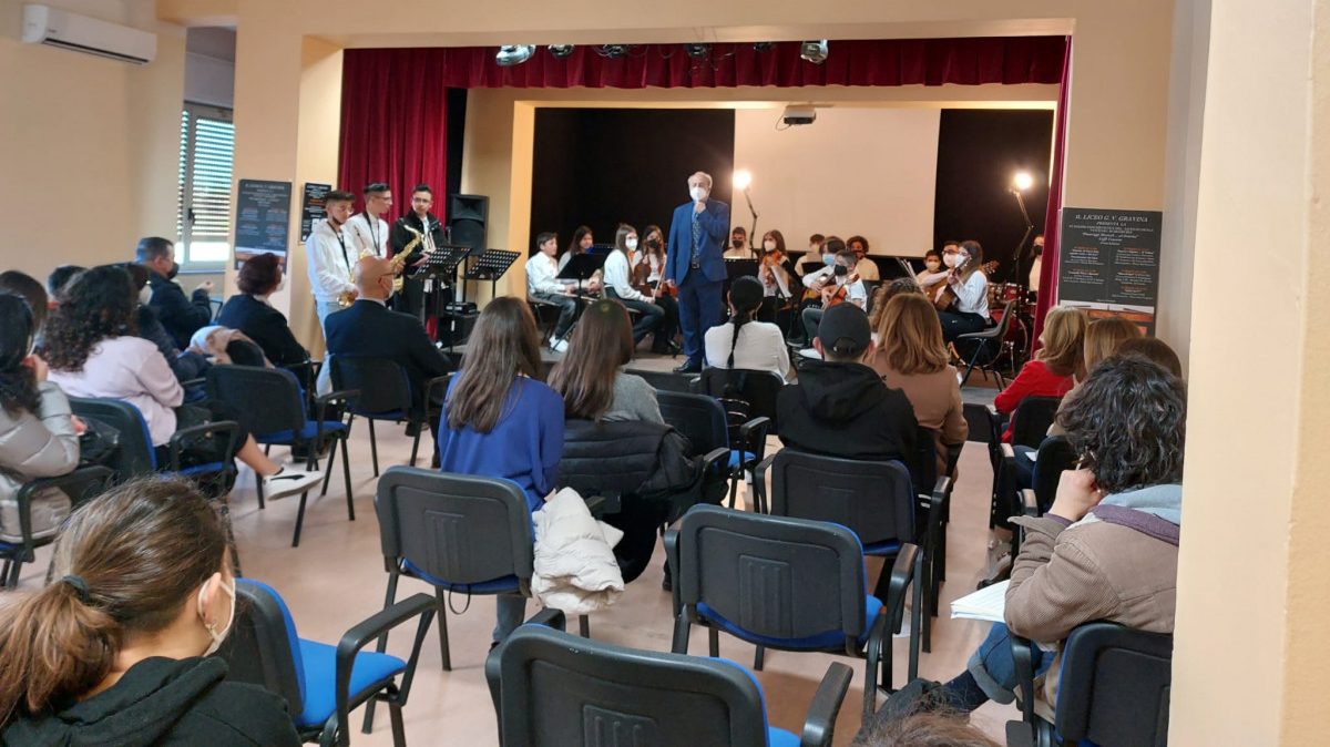 I giovani musicisti del “Gravina” hanno curato, con grande professionalità e molto garbo, tutte le fasi di questo “Caffè Concerto” che costituisce il primo vero appuntamento interamente realizzato dalla loro associazione simulata, la “Gravina Artists Management” (G.A.M.), nata all’interno dei PCTO (Percorsi per le Competenze Trasversali e l’Orientamento) e che si occupa di promozione di eventi artistico- musicali.
