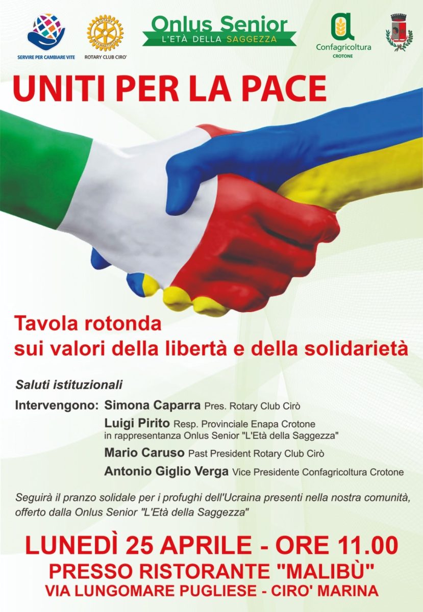 Cirò Marina, 25 aprile: “Uniti per la Pace” tavola rotonda e pranzo solidale con ospiti profughi ucraini