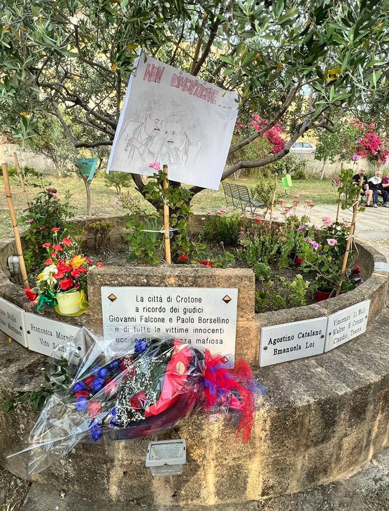Nel pomeriggio odierno, presso il Giardino “Giovanni Falcone e Paolo Borsellino”, si è svolta la manifestazione “Ricordo dunque esisto”, organizzata dalle Associazioni della rete di “Libera Crotone” e di “Italia Nostra – Crotone”, nel corso della quale sono stati commemorati i due magistrati uccisi dalla mafia 30 anni fa, e gli operatori della Polizia di Stato periti negli attentati di capaci e via D’Amelio.