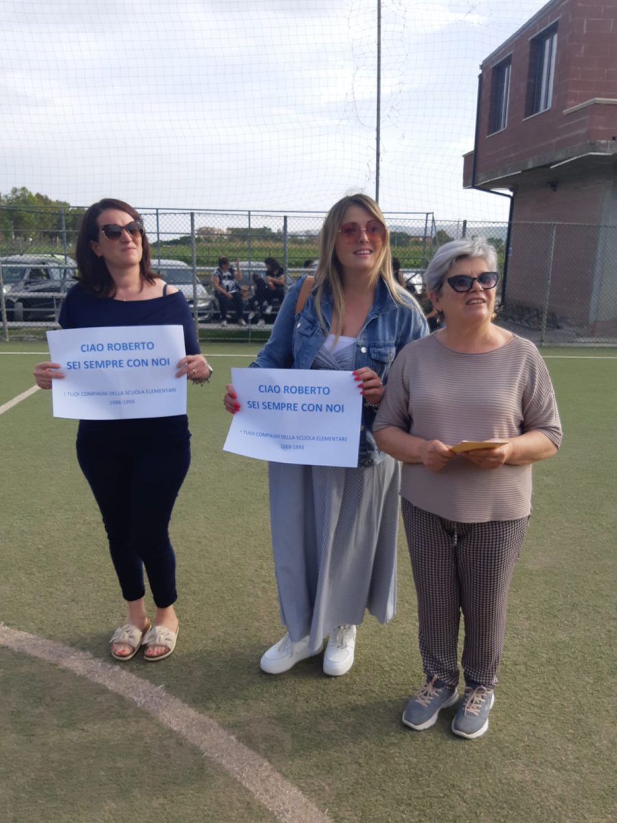 “Ciao Roberto, ti ricordiamo al secondo banco educato, sorridente, disponibile e sempre preparato, e se qualcuno ti chiedeva cosa vuoi fare da grande rispondevi il portiere. Ad un anno dalla tua scomparso sei sempre nei nostri cuori, il tuo sorriso è la nostra forza; ti ricordiamo così, propositivo e sportivo ed è per questo che vogliamo sostenere a nome tuo e con un segno tangibile, la sportività e la gioiosità di piccoli sportivi come lo eri tu”.