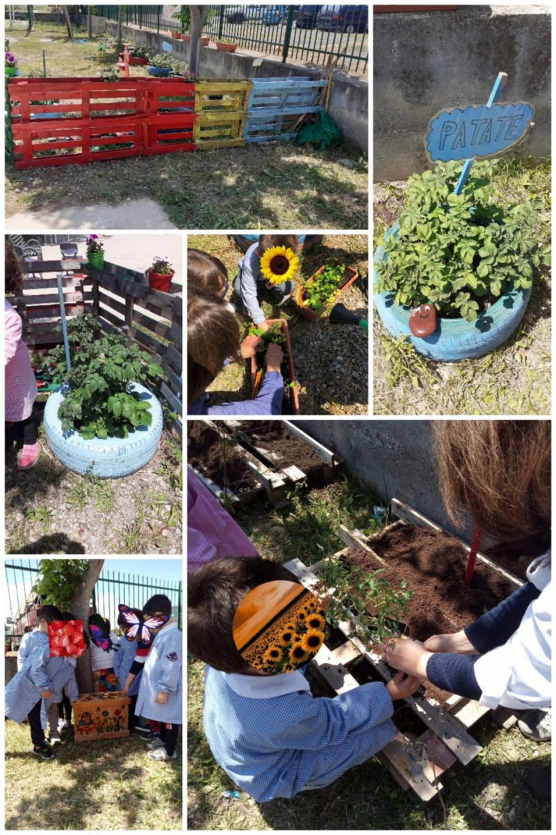 Tanto stupore negli occhi degli alunni nel vedere un germoglio che nasce. La possibilità di capire il gioco della vita, prendendosi cura di una piantina, comprendendo di far parte di un mondo meraviglioso che va amato e rispettato. Un percorso che è andato avanti per qualche mese. Infatti, in tutti i plessi, a partire dallo scorso febbraio, è stato predisposto il terreno o in alternativa dei contenitori riciclati come bancali o pneumatici, dove, man mano, sono stati piantati i semi o le piantine.