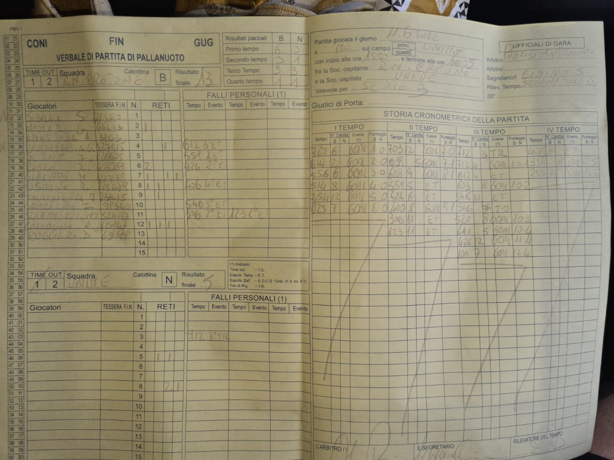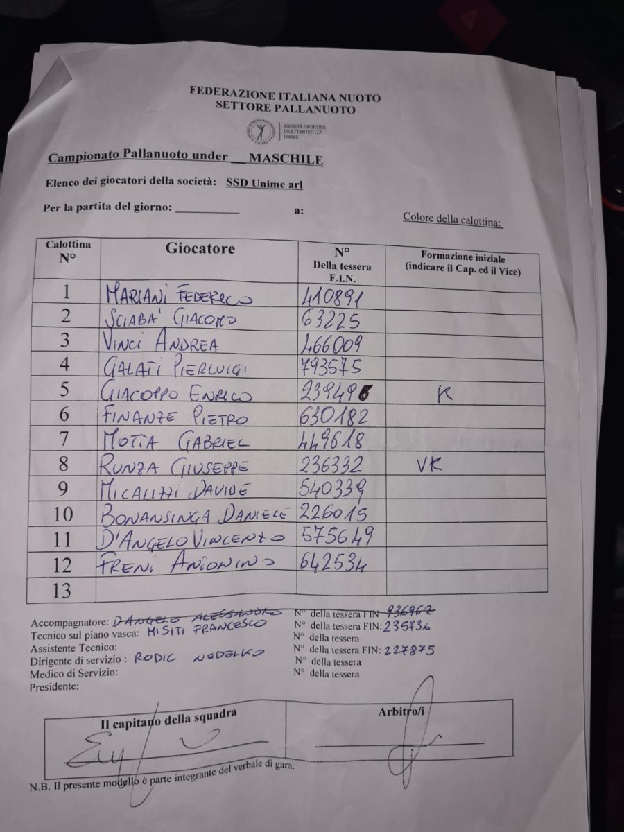 In allegato foto verbale di gara, distinte giocatori e foto della partita!
