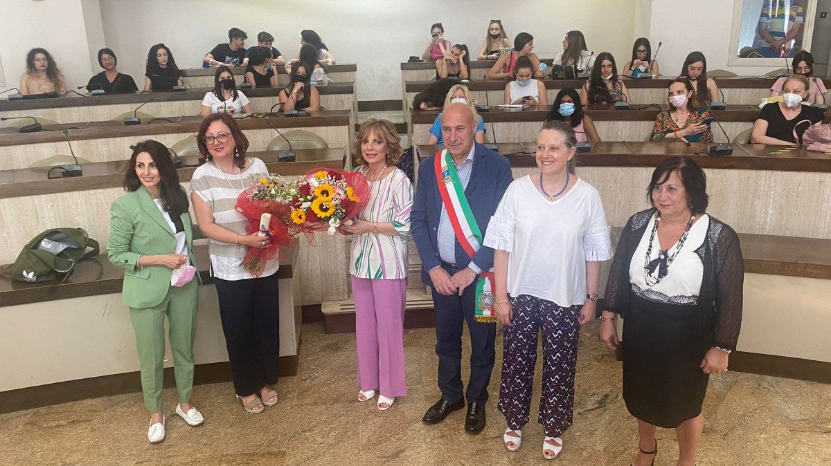 Con queste parole il sindaco Voce ha aperto la cerimonia che si è tenuta, questa mattina nella Sala Consiliare, per il conferimento del premio “Nuova Consapevolezza nella Scuola” che per l’anno scolastico 2021/2022 è stato assegnato alla professoressa Ornella Pegoraro dell’Istituto Pertini – Santoni e alla professoressa Giovanna Ripolo del Liceo Classico Pitagora.