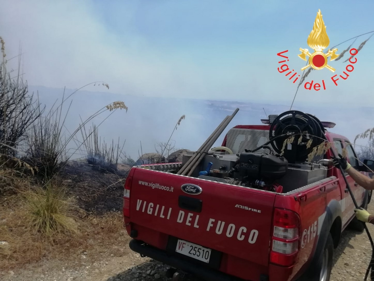 Nel Crotonese, in loc Brasimato tra i comuni di Crotone e Rocca di Neto un vasto incendio di arbusti e macchia mediterranea e zona boscata. Sul posto impegnate la squadra AIB dei vigili del fuoco sede centrale e la squadra del distaccamento di Petilia Policastro.