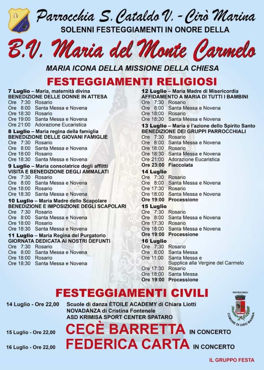 Noi tutti del comitato festa insieme all’aiuto di tantissimi compaesani, siamo all’opera già da settimane, per organizzare una delle feste più antiche della nostra tradizione popolare e religiosa, la festa dedicata alla Madonna del Carmelo .