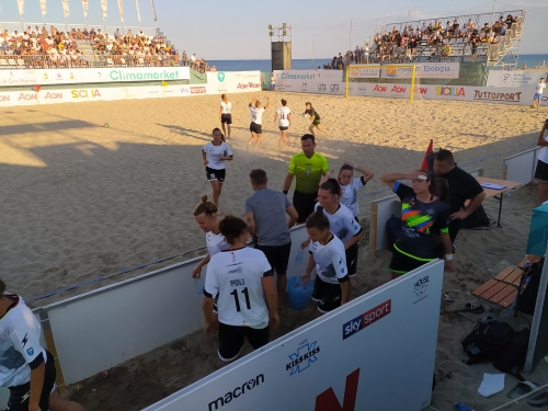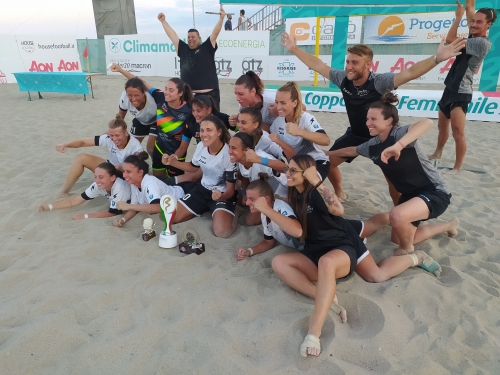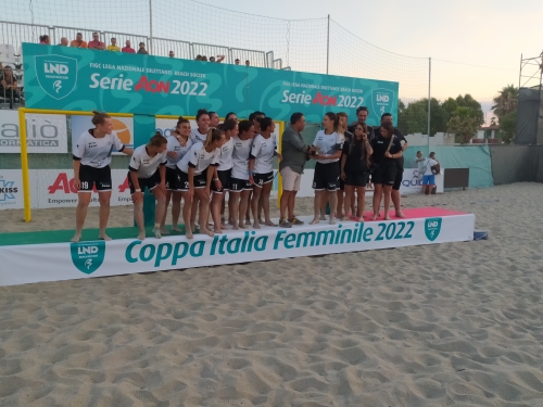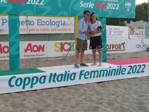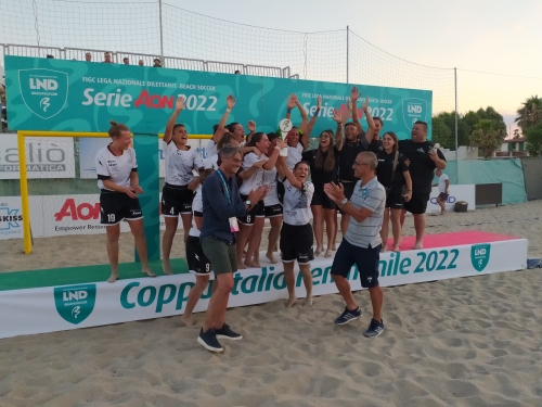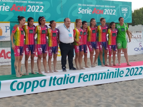 Dopo lo spettacolo offerto dal Catania Beach Soccer, che con l’ultima partita di oggi ha fatto l’en plain di vittorie nella tappa di Cirò Marina con tre vittorie su tre e la conclusione nel tardo pomeriggio delle altre partite programmate, ha avuto inizio la finale per l’aggiudicazione della prima coppa Italia Femminile di beach soccer. Ad aggiudicarsi questo primo importante trofeo, targato Cirò Marina, l’Accademy Beach soccer di Terracina, che ha battuto dopo una partita molto equilibrata e l’extra time, il Pavia calcio a 5, ai rigori. Davanti al pubblico delle grandi occasioni, con tutti gli spalti gremiti, davanti le autorità, la partita ha decretato, oltre la vittoria della squadra Accademy, la vittoria degli organizzatori, dell’Amministrazione Comunale, della Lega FIGC-LND, che confermano così la bontà della scelta, con un primo risultato della prima parte di questo Luglio in sport sicuramente che è andato oltre ogni aspettativa. Un torneo targato Figc-Lega Nazionale Dilettanti, composto da 17 squadre divise in due gironi detti Poule Scudetto e Poule Promozione che suddivisa in diverse tappe determinerà la fase finale per l’assegnazione del titolo di campione d’Italia. Infatti, le prime sette classificate della Poule Scudetto e la prima della Poule Promozione, si qualificano alla fase finale dove si assegnerà il titolo di Campione d’Italia. Per la prima volta, ha fatto tappa a Cirò Marina, l’assegnazione dell prima coppa Italia Femminile, vinta come dicevamo dall’Accademy Beach Soccer, che hanno, con risultati diversi, vinto i rispettivi gironi di qualificazione. Al termine dell’incontro, la premiazione, in primis degli arbitri e poi, dopo la seconda classificata, la consegna della Coppa Italia a cura del presidente della FIGC Saverio Mirarchi e del responsabile nazionale del Beach soccer, Desini. Gli altri riconoscimenti sono stati consegnati dallo stesso Sindaco, Sergio Ferrari, dall’assessore allo sport, Ferdinando Alì, dalla presidente del consiglio comunale, Francesca Aloisio e dal Branch Manager della AON, sponsor della manifestazione, Francesco Trebisonda. Non potevano mancare gli auguri, con tanto di taglio della torta, all’assessore Ferdinando Alfì che proprio oggi compie 33 anni. Un compleanno che ricorderà perché sarà sempre legato all’assegnazione della prima coppa Italia femminile di beach Soccer nella nostra città.