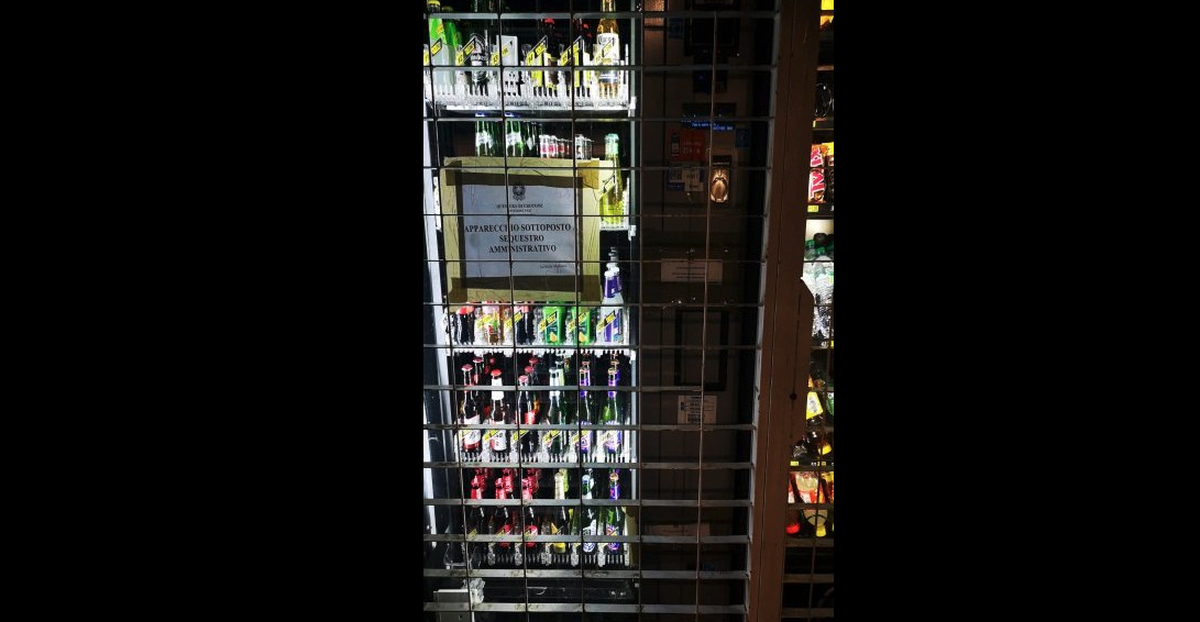 Pertanto, si è proceduto al sequestro amministrativo del distributore e delle bevande in esso contenute, in quanto utilizzate per commettere la violazione, con la conseguente irrogazione della sanzione prevista al titolare della macchina erogratice.