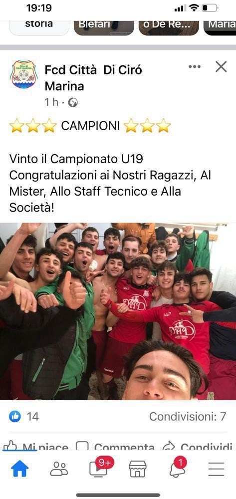 19 e di prima categoria. I risultati sono stati eccellenti! Campionato Under 19 vinto e salvezza, anticipata, con la prima squadra!!!