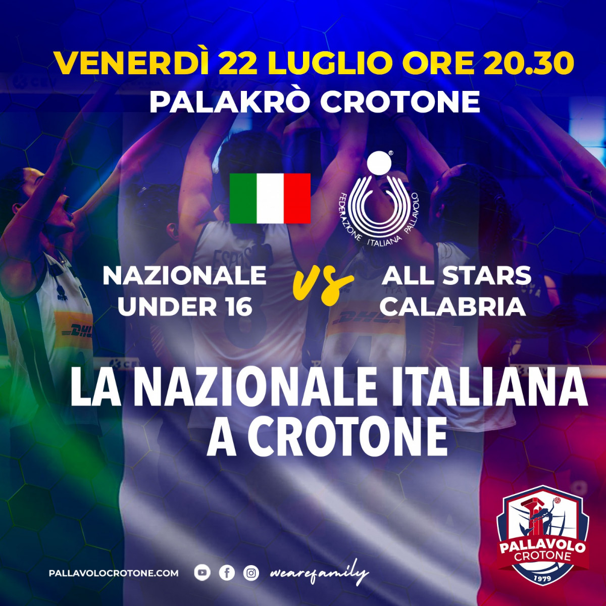 Il gruppo Italia sotto la guida di mister D’aniello sta rifinendo la preparazione per il torneo internazionale 8 nazioni proprio a Camigliatello silano per questo alla richiesta di fare un amichevole in zona la società si è subito messa a disposizione per mettere nelle migliori condizioni possibile, allestendo una formazione denominata all star sotto la guida di mister Iurlaro e Asteriti, formata da atlete calabresi in grado di tenere il ritmo delle azzurre, la location ovviamente sarà il Palakro’ e sarà abbellito e reso ospitale ancora di più per tutta la community volley.
