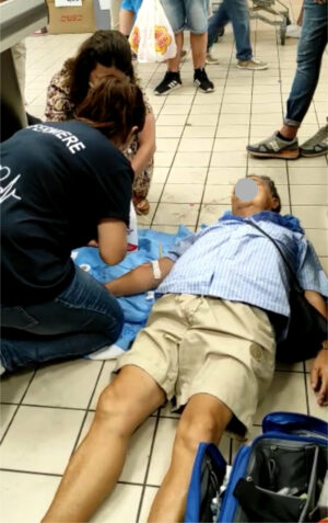 Il signore è stato colpito da un malore improvviso mentre faceva la spesa e si è accasciato a terra.