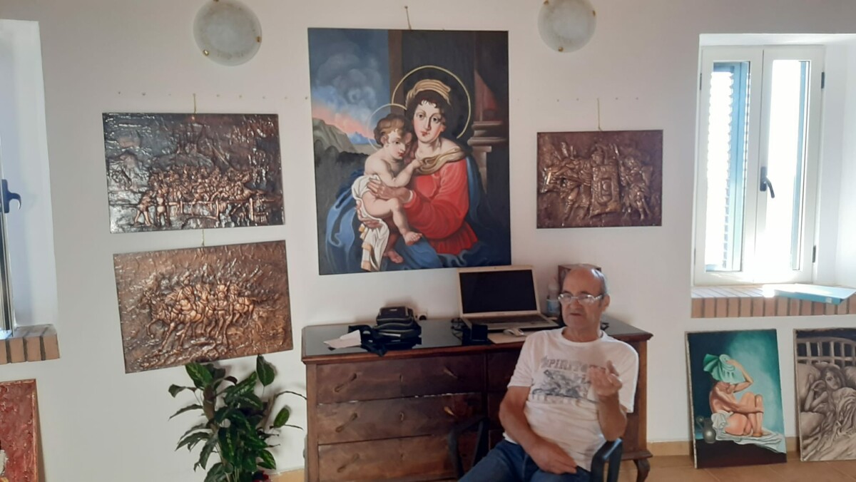 Francesco Splendido, in arte Michele Guerra, nella sua sala d’arte a Crucoli